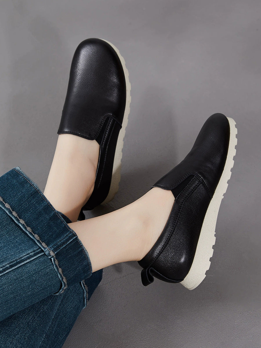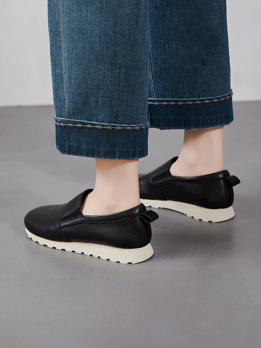 נעלי אביב מעור אמיתי עם עקב נמוך לנשים