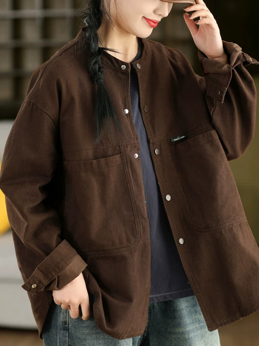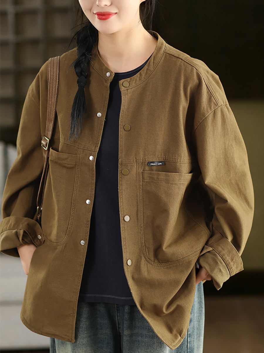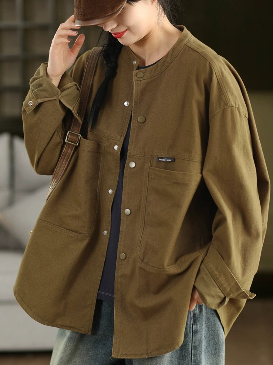 מעיל חולצה לנשים בצבע טהור אביב 100% כותנה