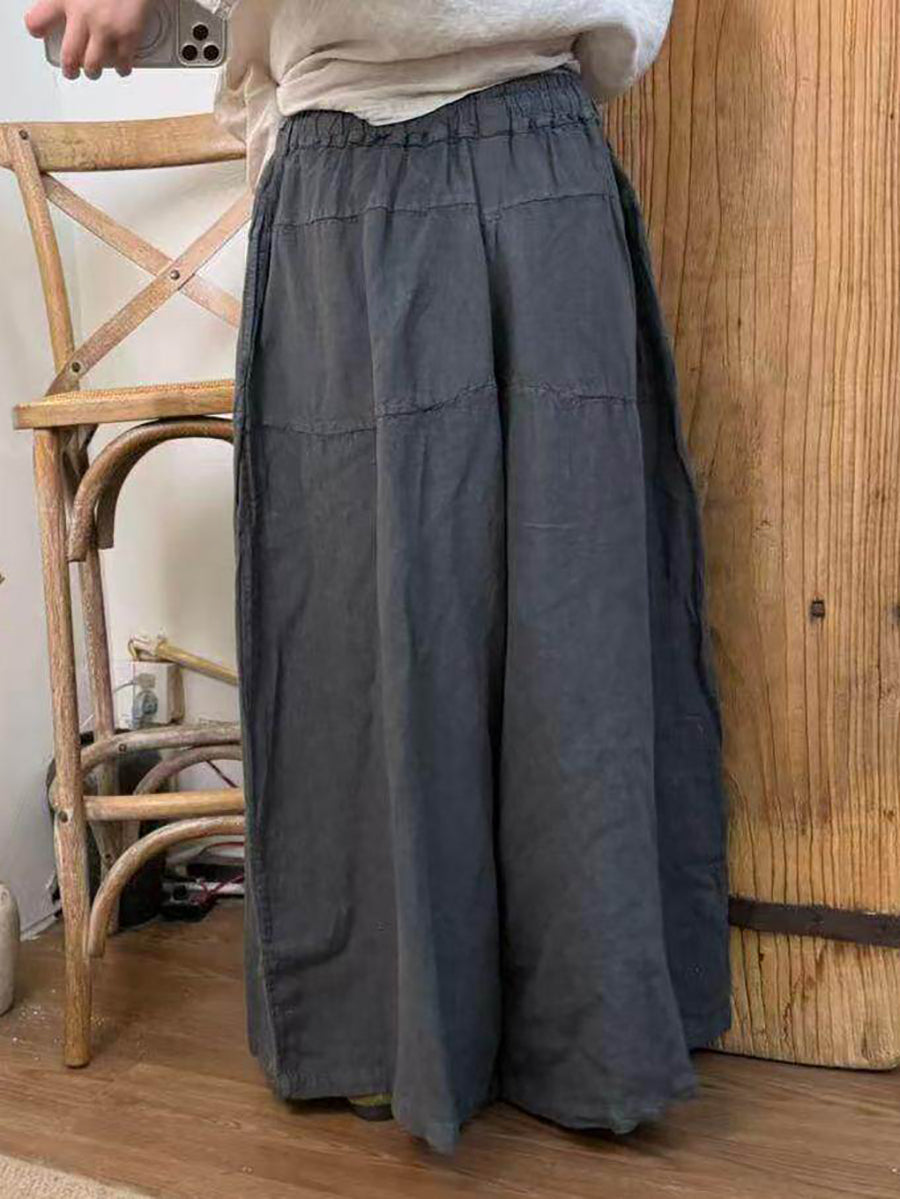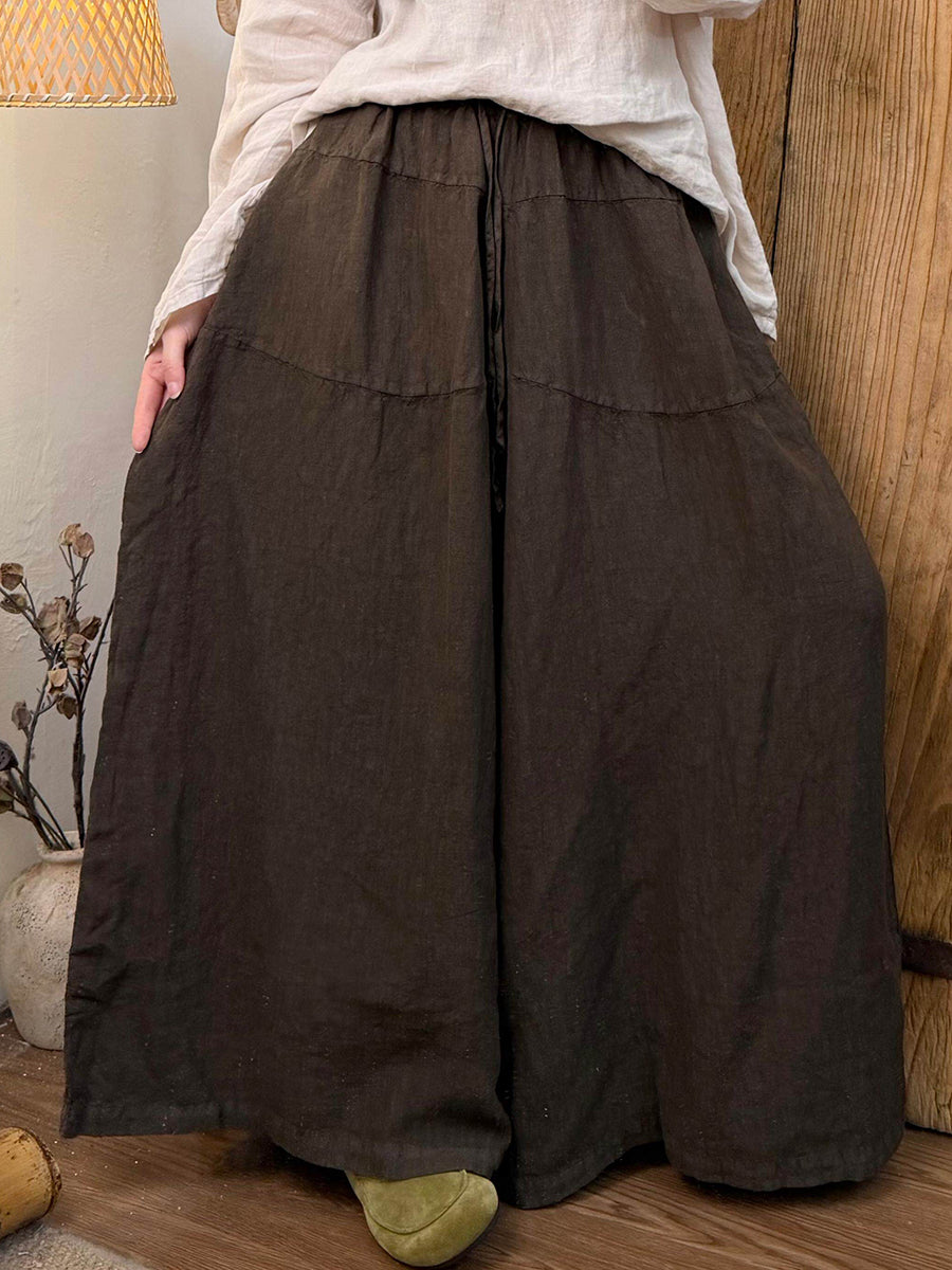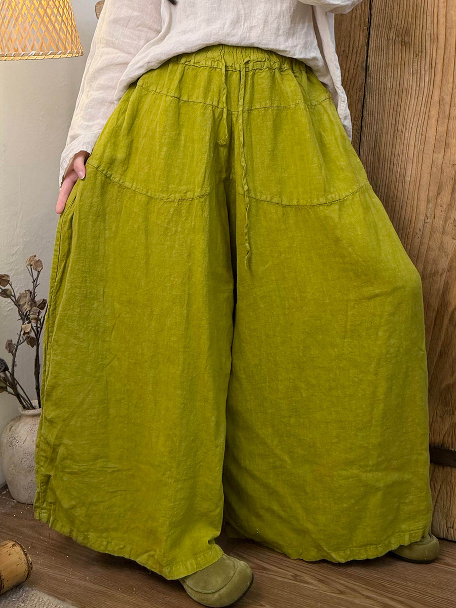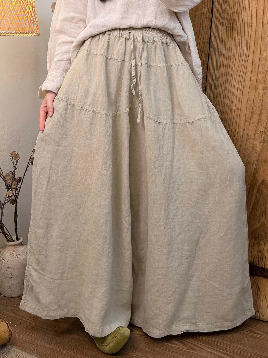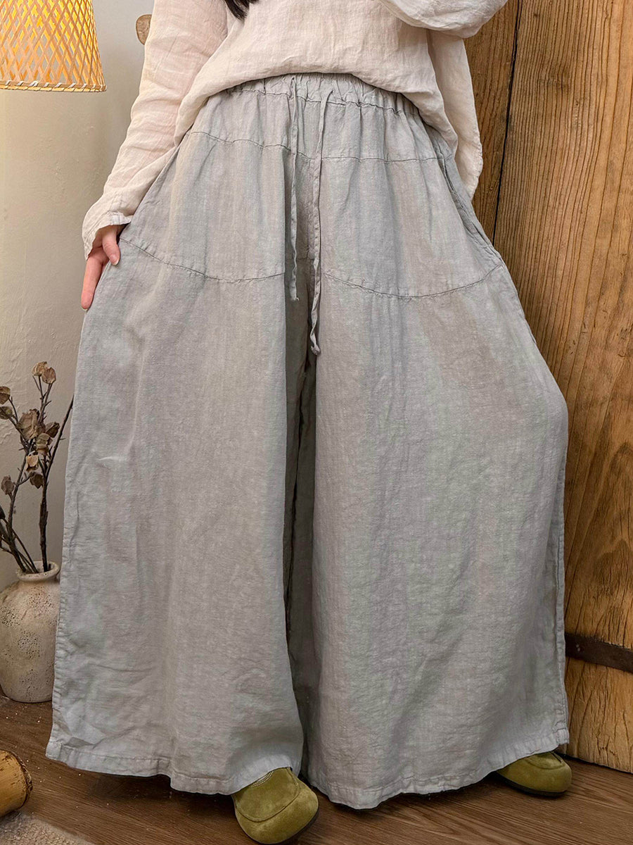 מכנסי פשתן רחבים בצבע טהור אביב לנשים