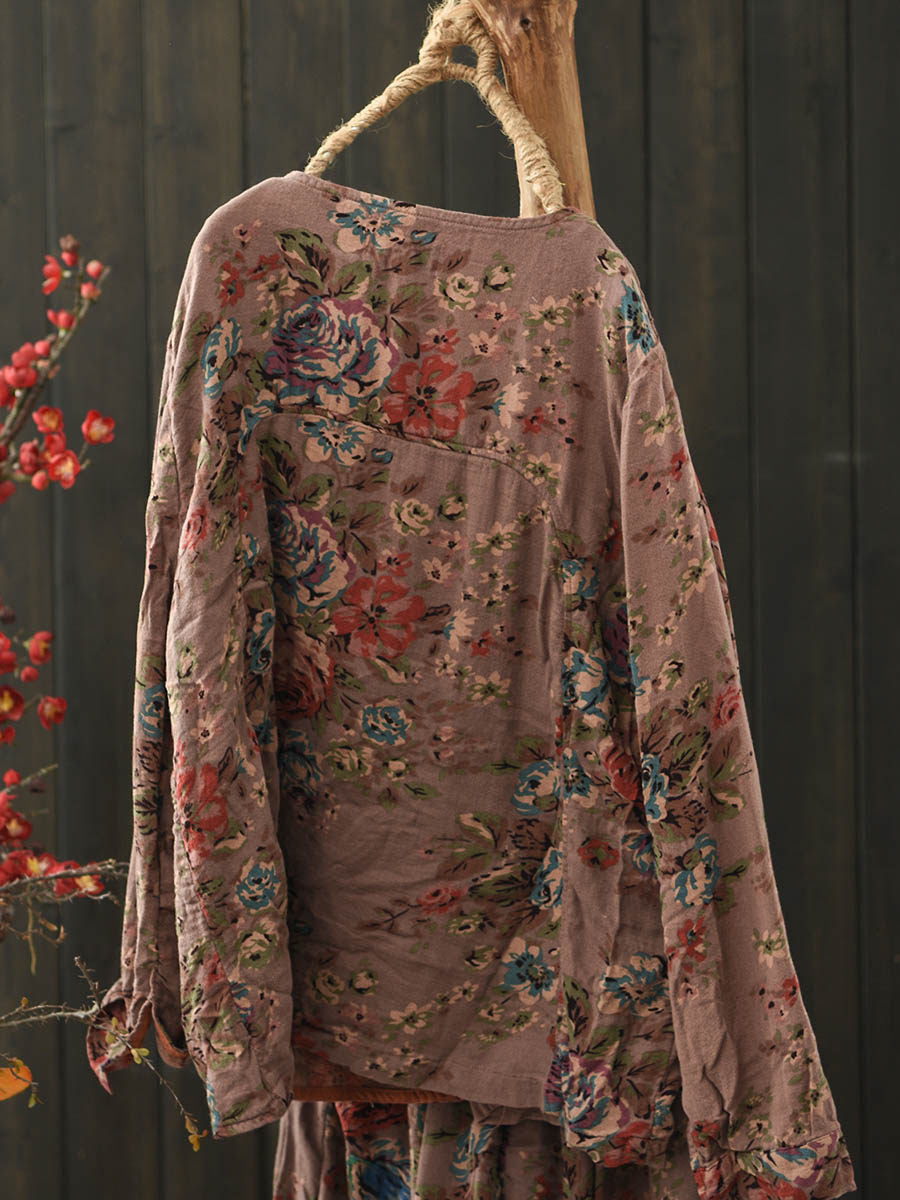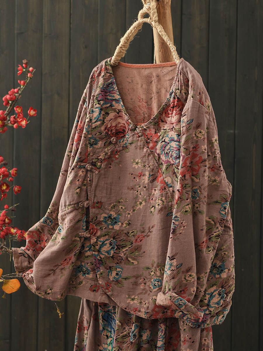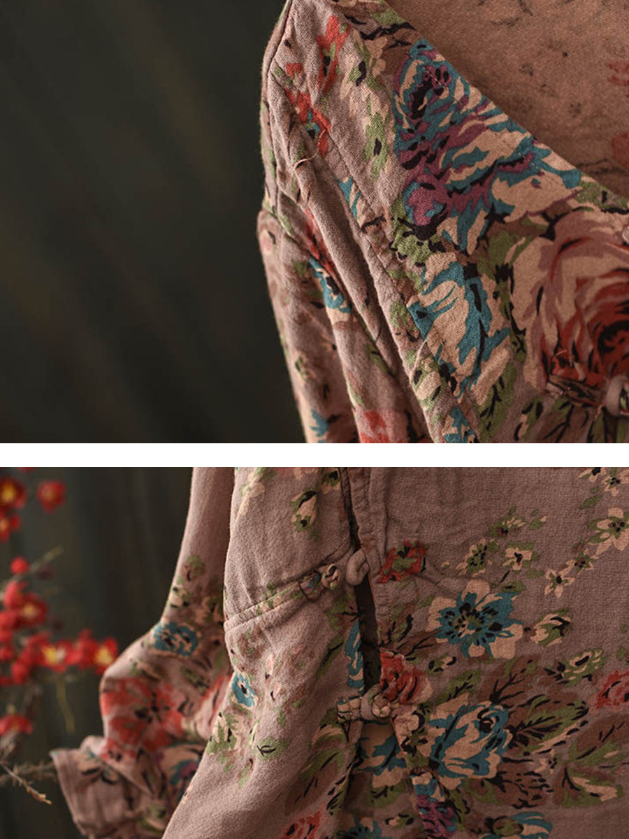 חולצת כותנה עם צווארון V פרחוני ואביב לנשים