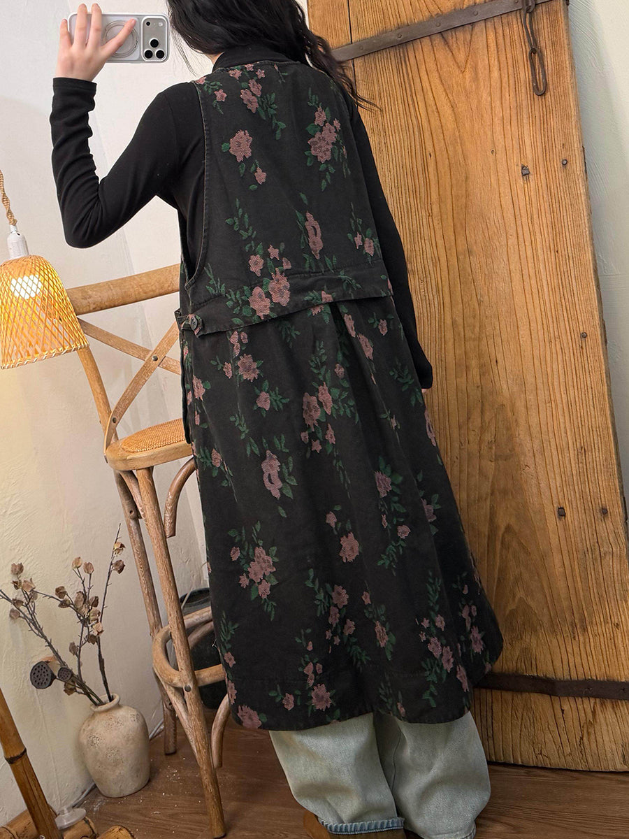 שמלת אפוד עם צווארון V פרחוני ואביב לנשים
