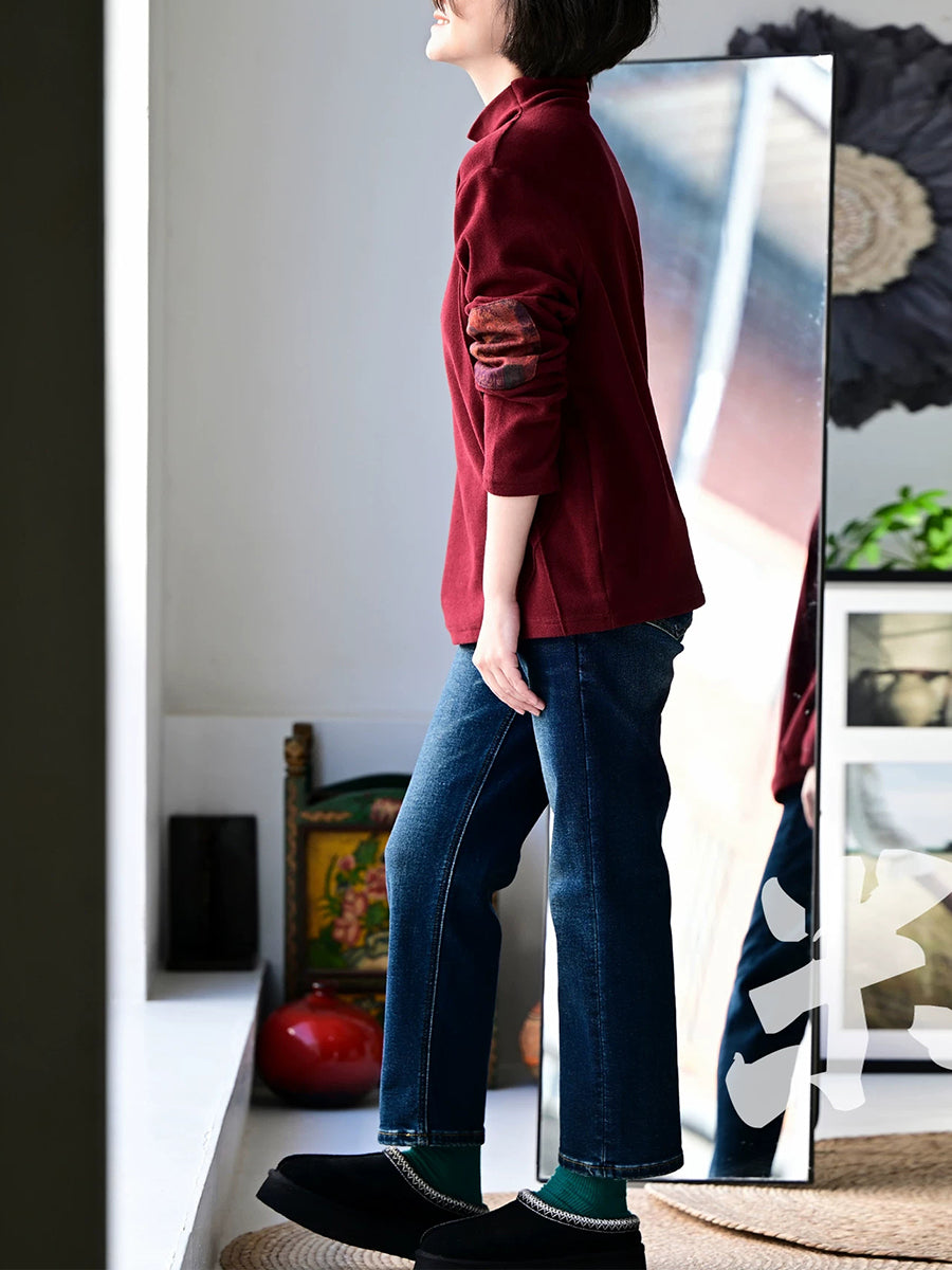 חולצת גולף מכותנה עם טלאים באביב לנשים