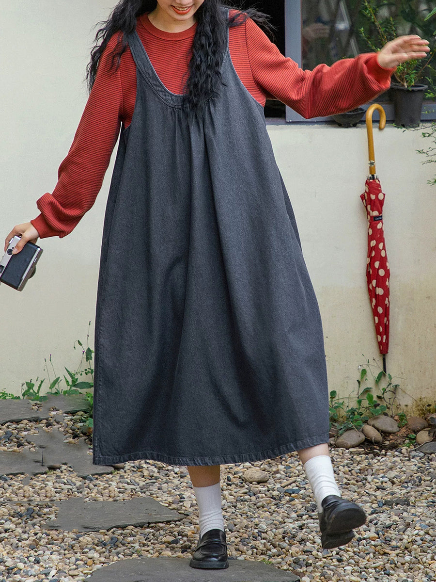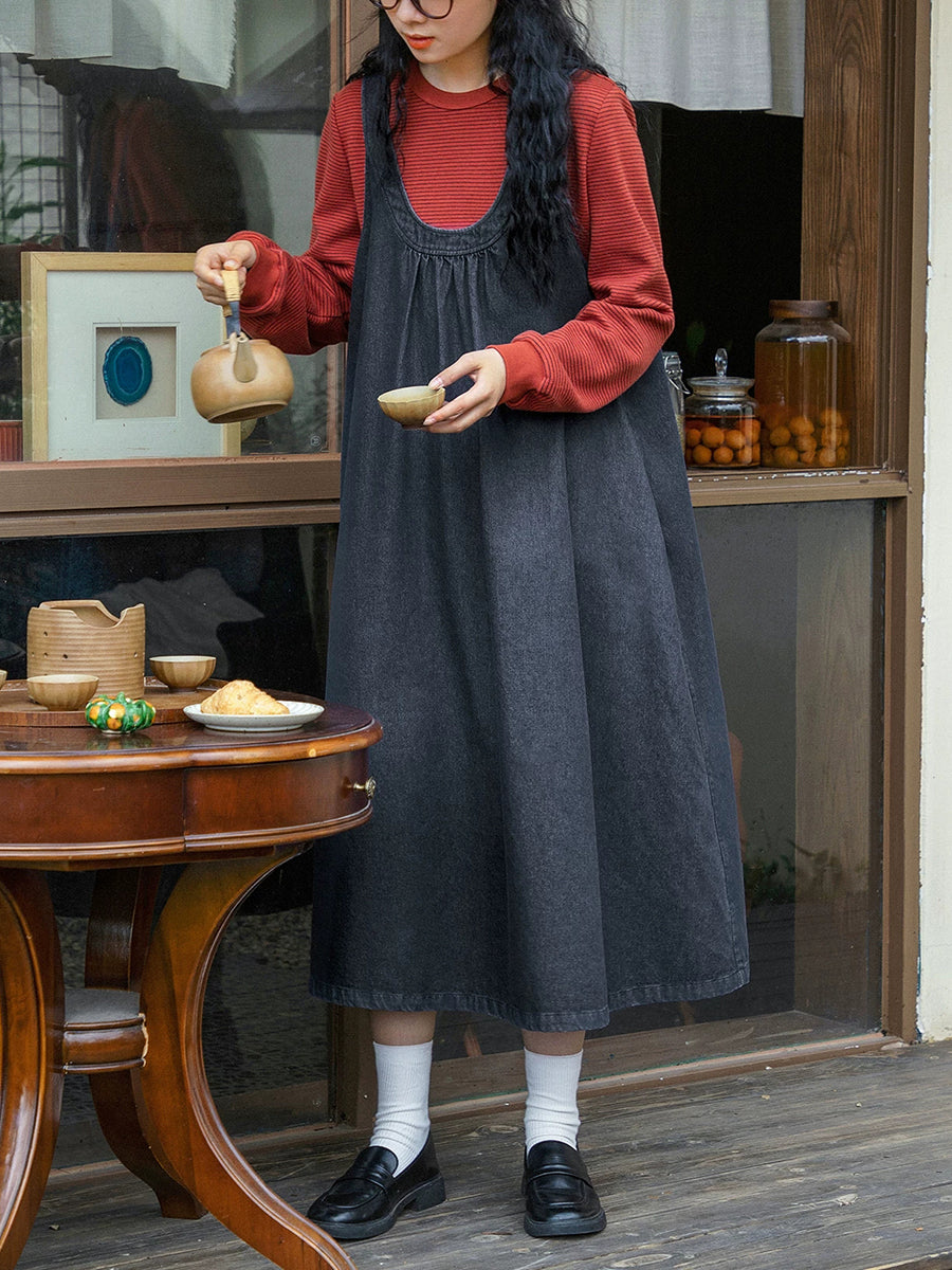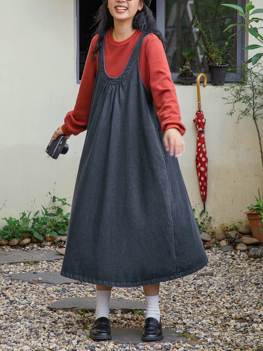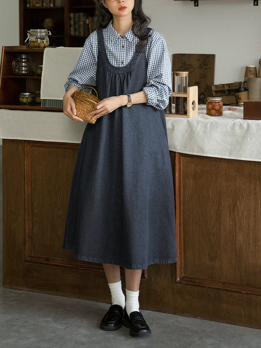 שמלת ג'ינס באורך הקרסול, עשויה מ-100% כותנה איכותית, משלבת אסתטיקה רטרו נצחית עם צבעים אחידים רב-תכליתיים. היא עוצבה לעונות מעבר, ועוברת בצורה חלקה מהאביב לסתיו, ומציעה גם נוחות וגם סגנון עמיד. גזרת הגזרה הקלאסית מספקת פונקציונליות פרקטית תוך שמירה על פשטות מתוחכמת.