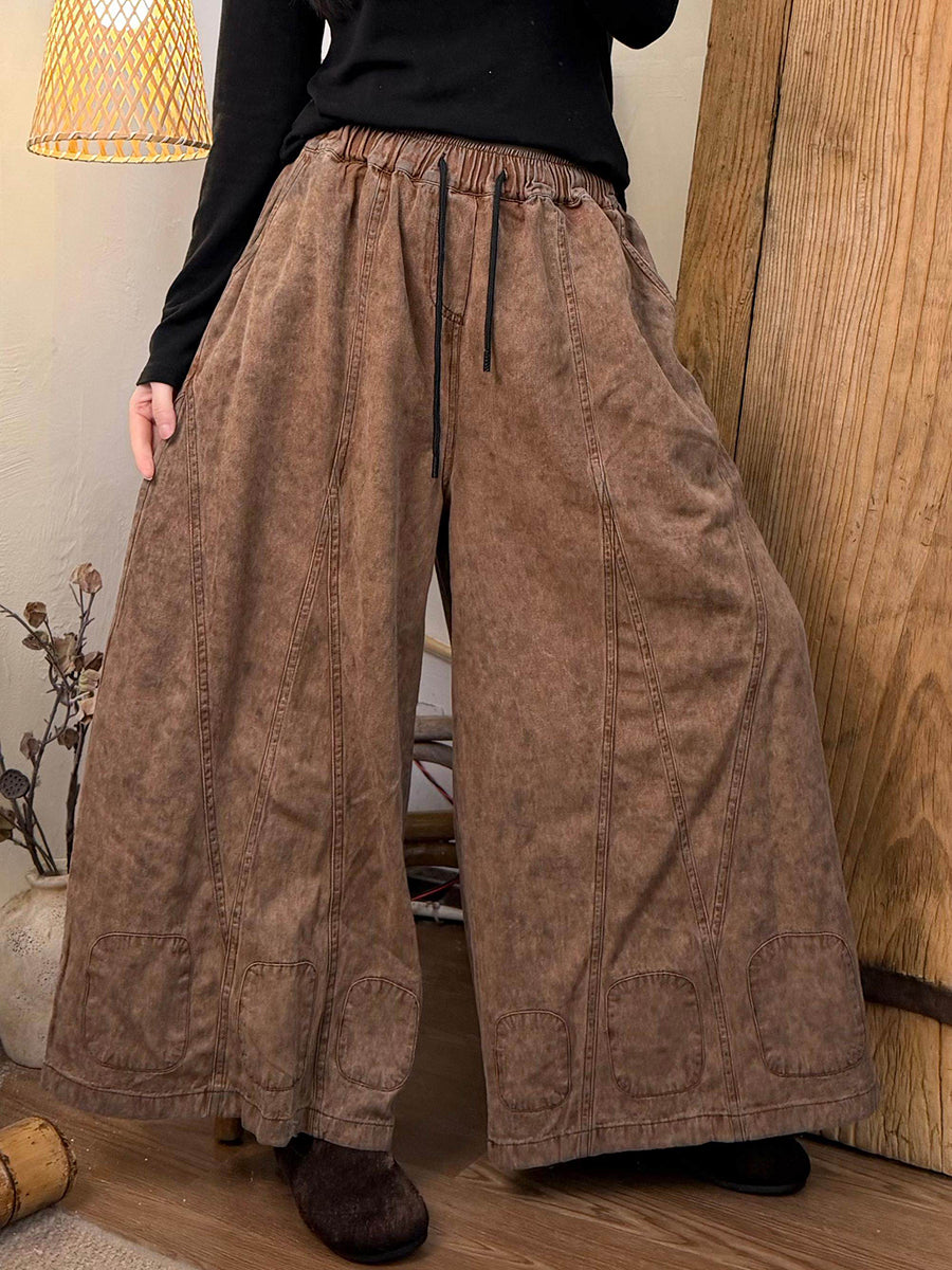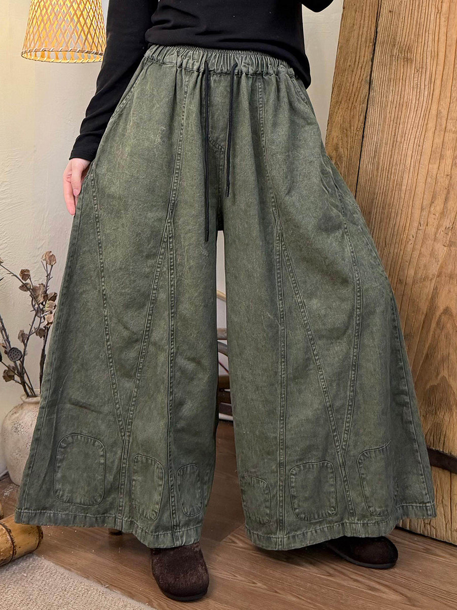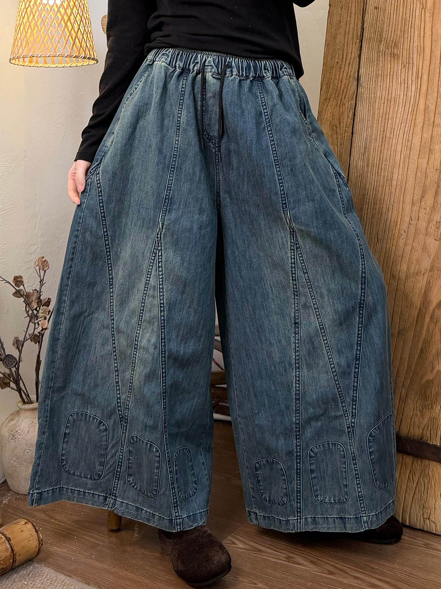 מכנסי ג'ינס רחבים בצבע טהור בסגנון אביב לנשים