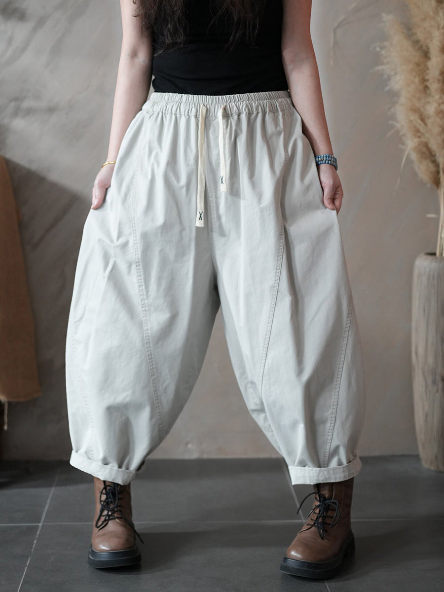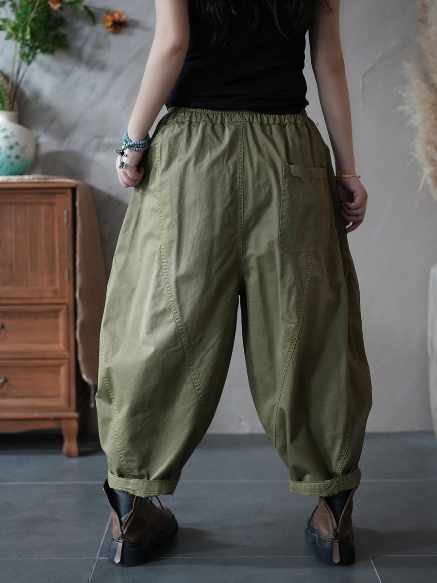 מכנסי הרמון בצבע טהור בצבע רטרו לנשים באביב