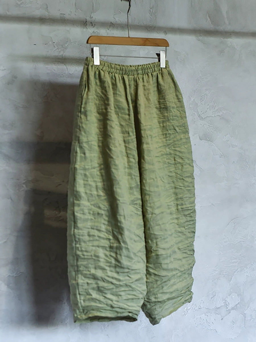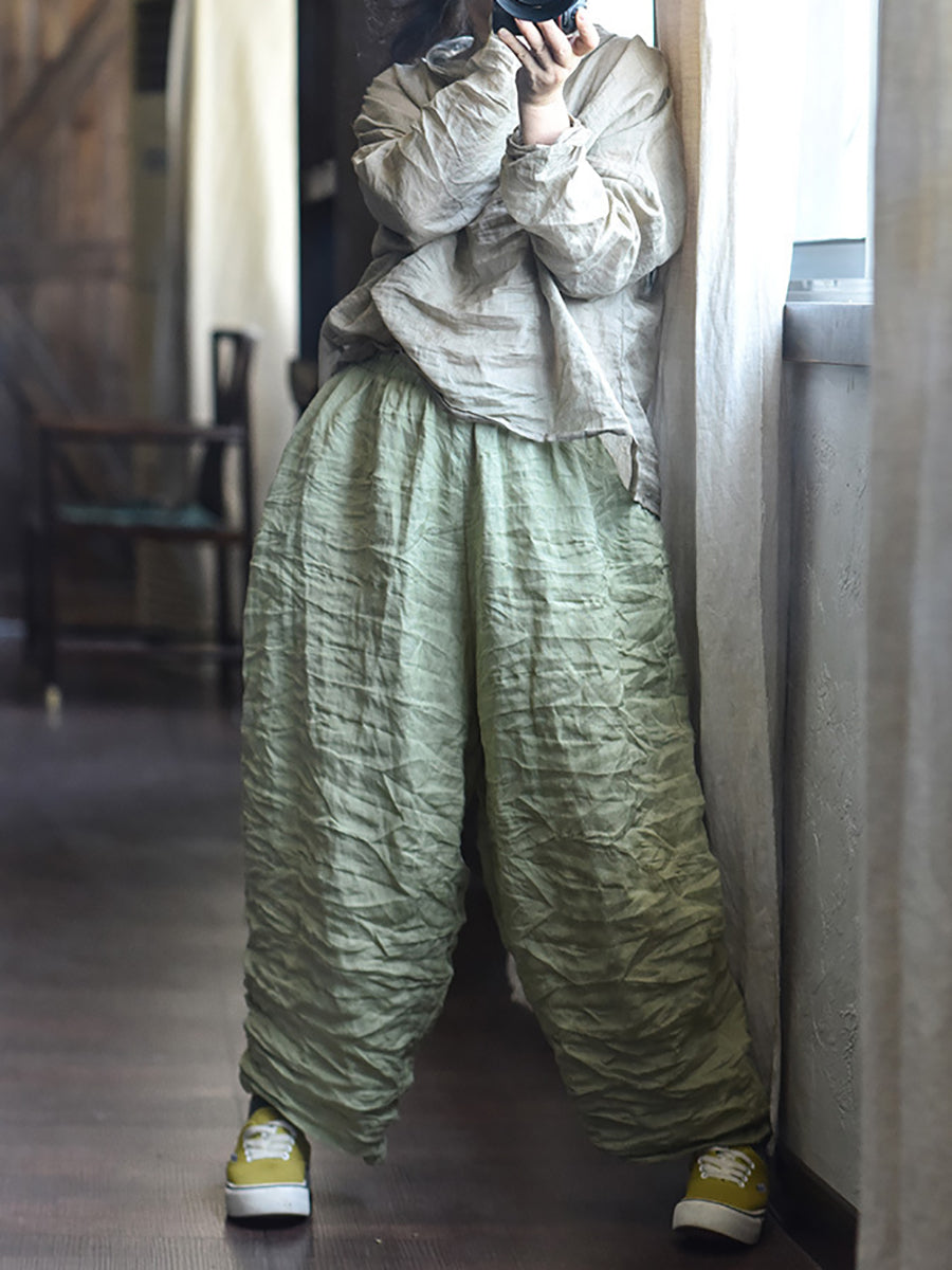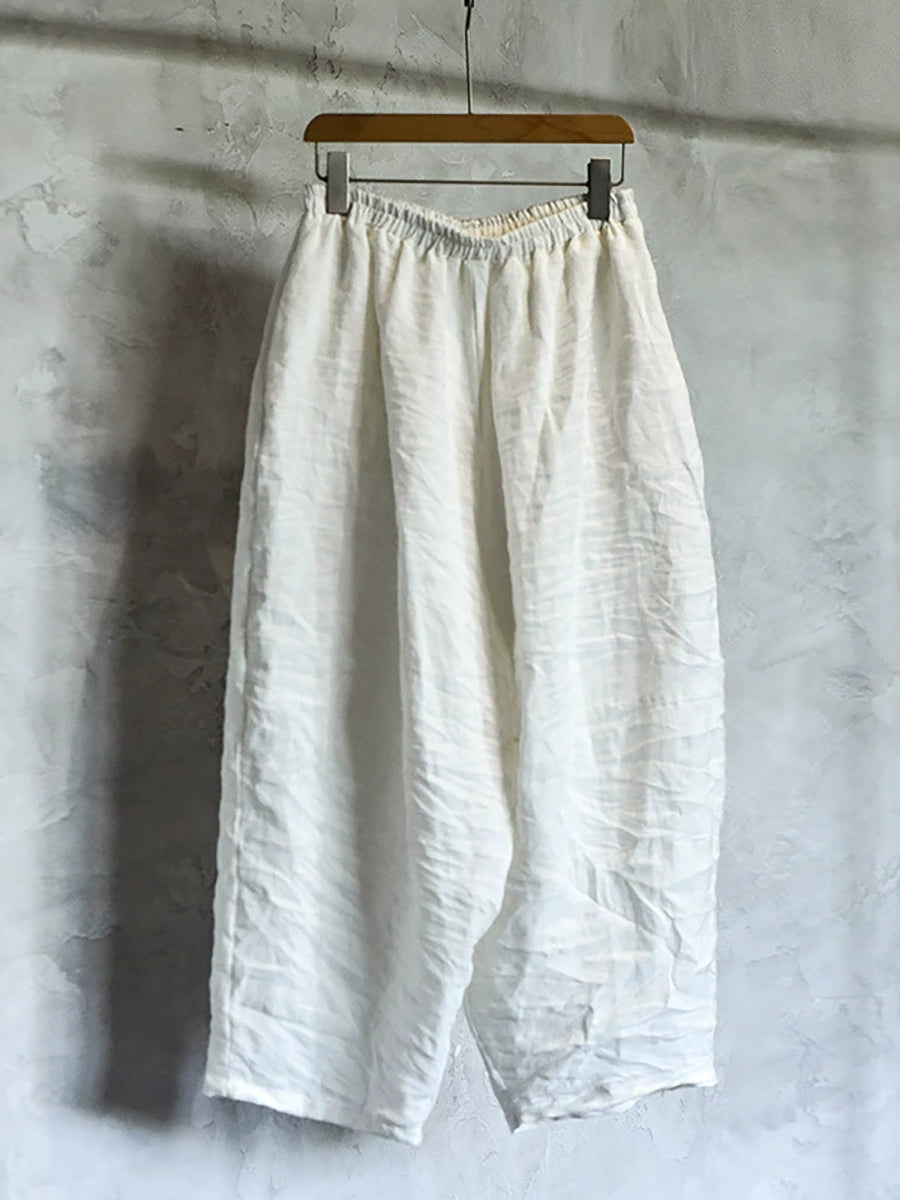 מכנסי פשתן רחבים בצבע טהור בסגנון אביב לנשים