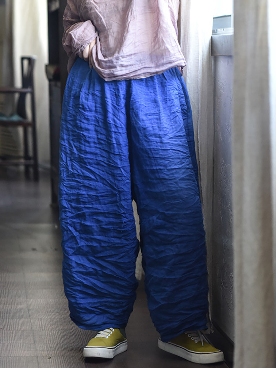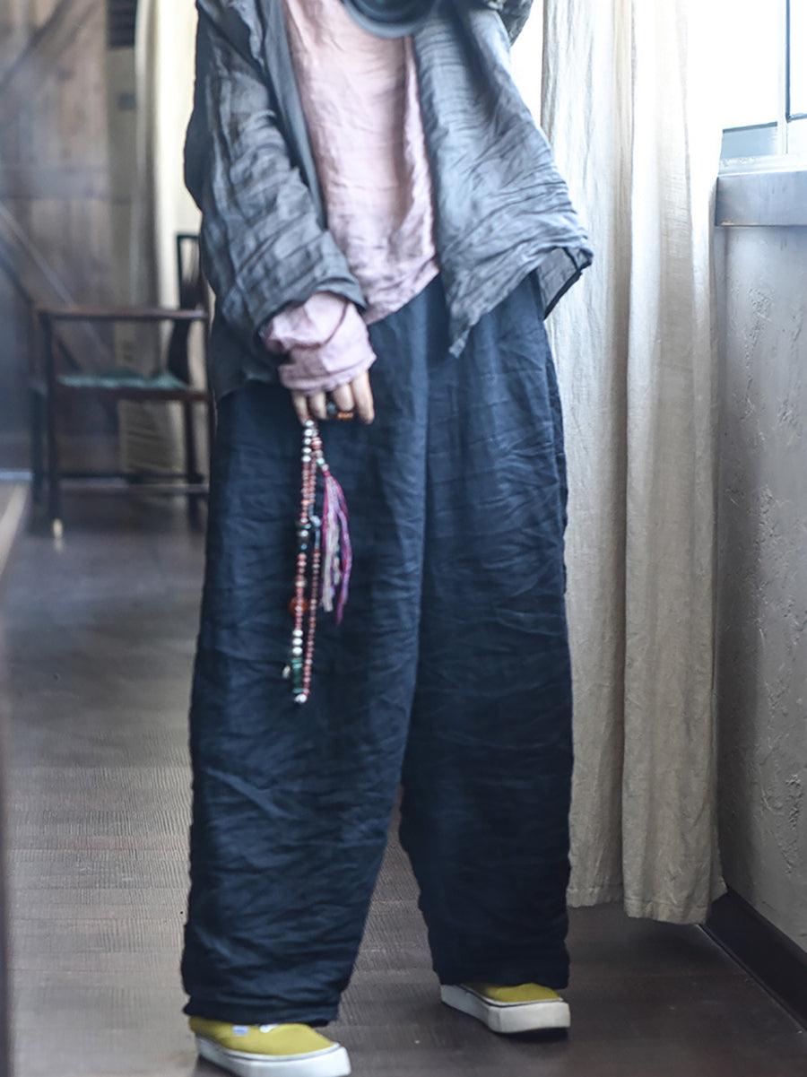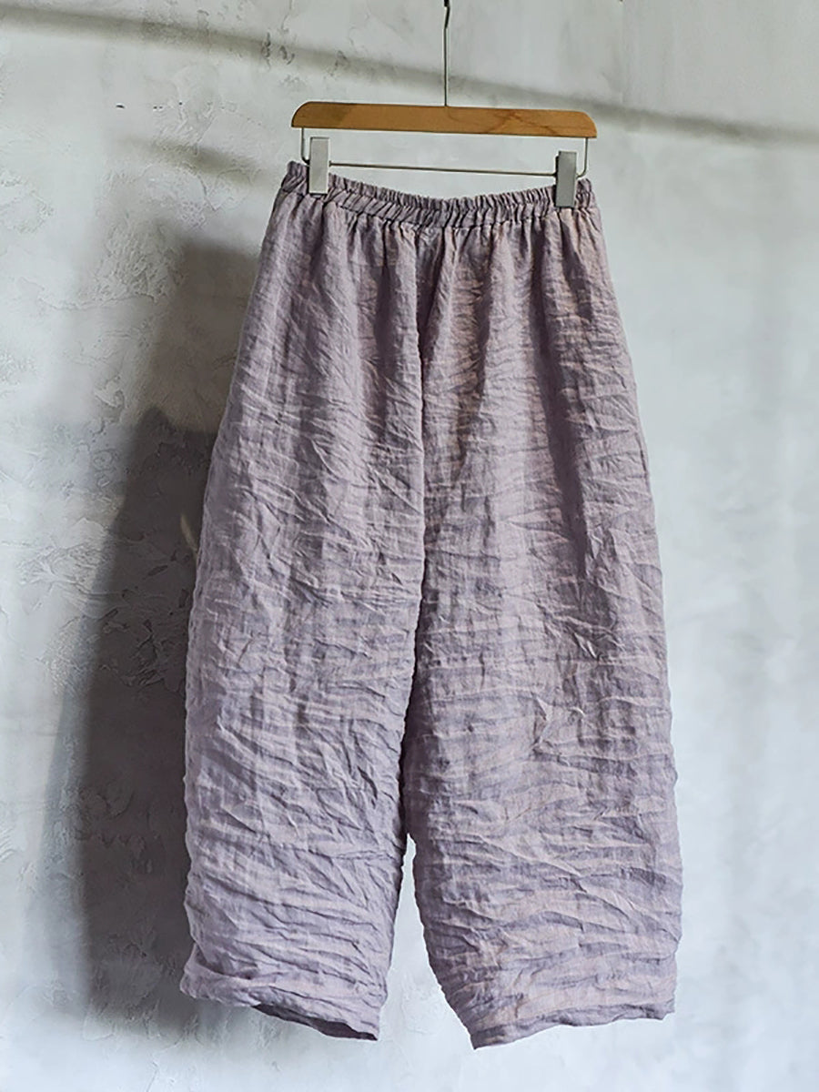 מכנסי פשתן רחבים בצבע טהור בסגנון אביב לנשים