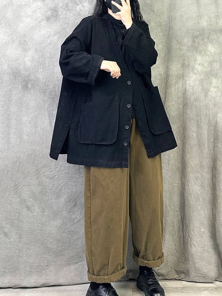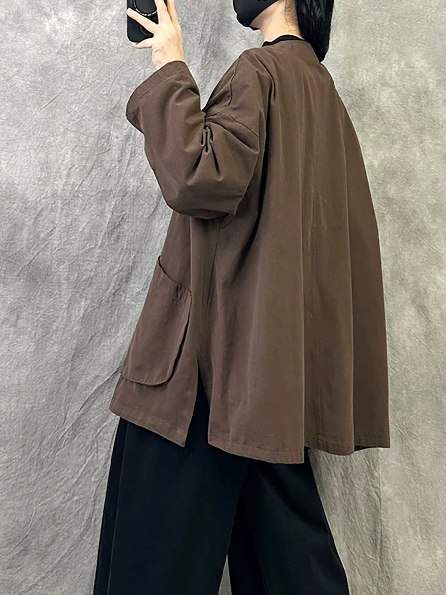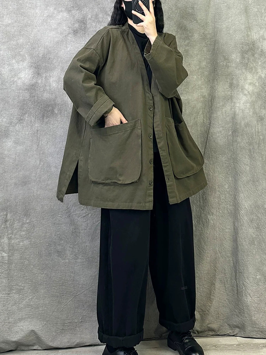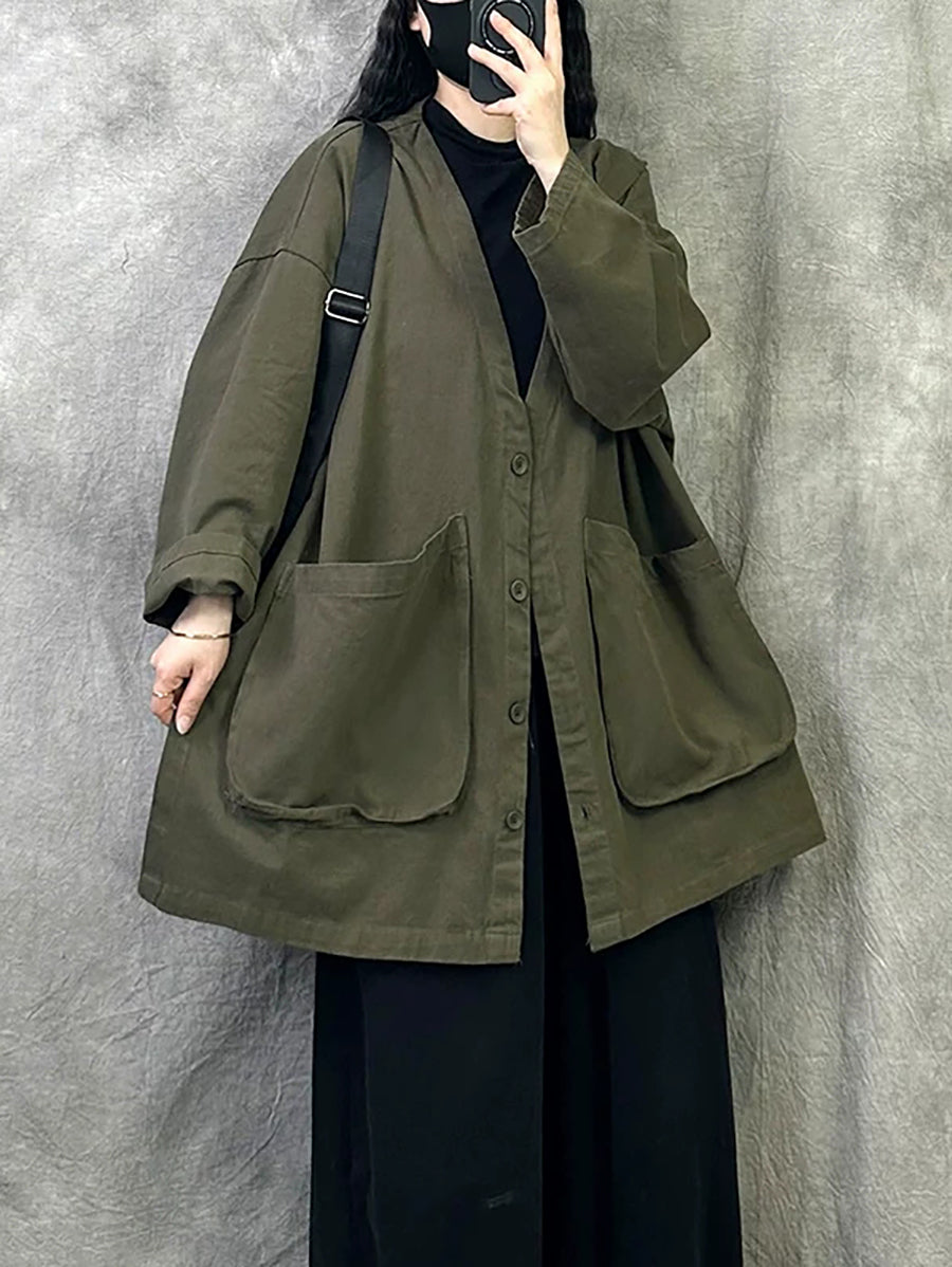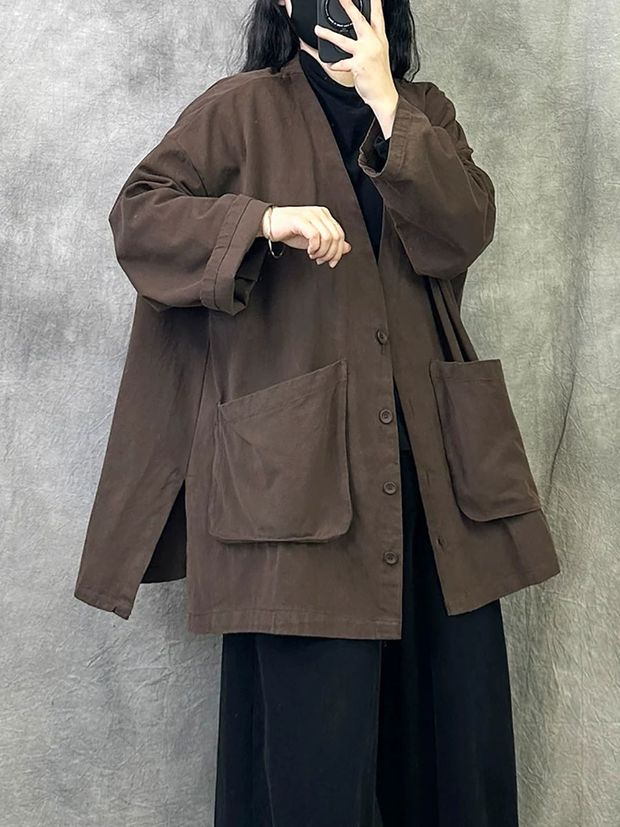 מעיל טרנץ' בצבעי V עם צווארון V בצבע רטרו לנשים באביב