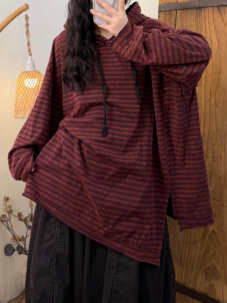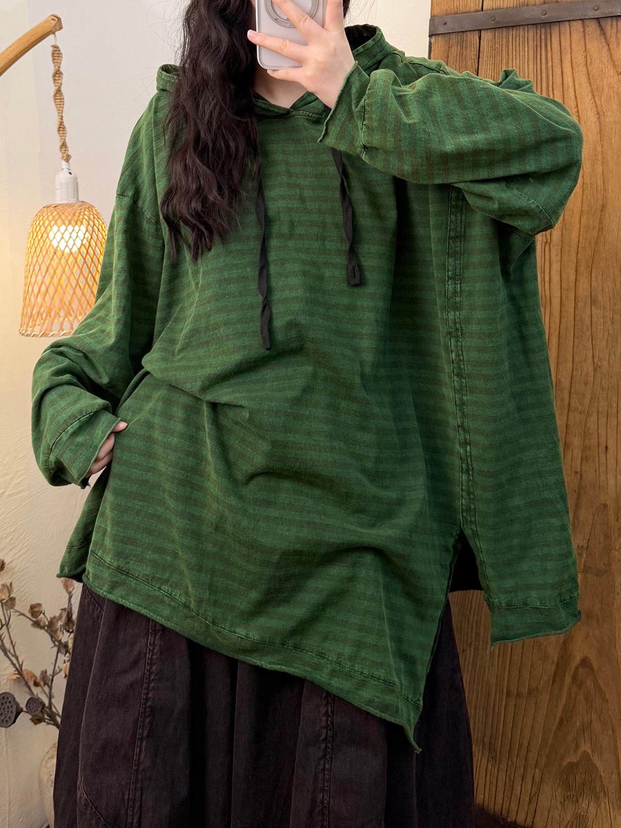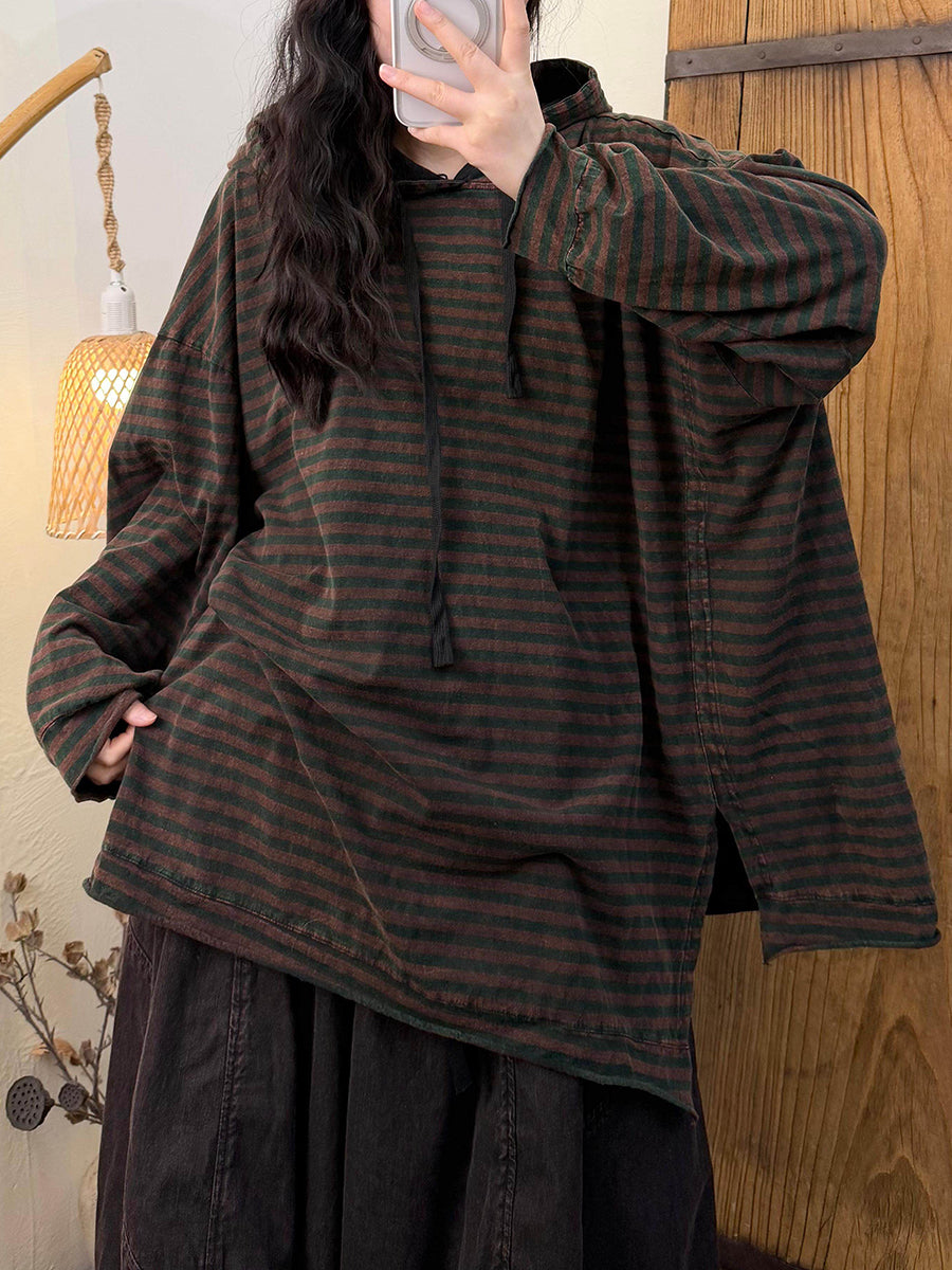 קפוצ'ון כותנה עם פסים בסגנון רטרו לנשים באביב