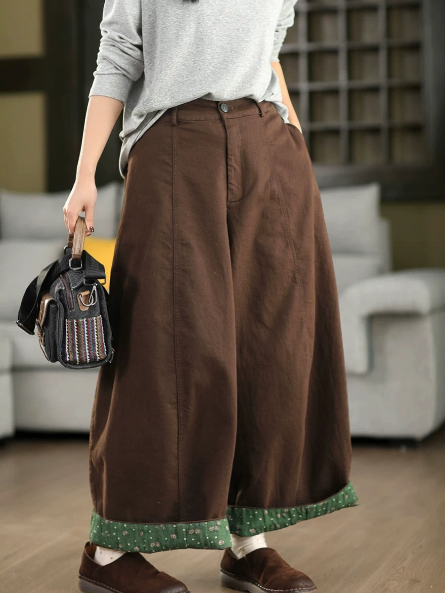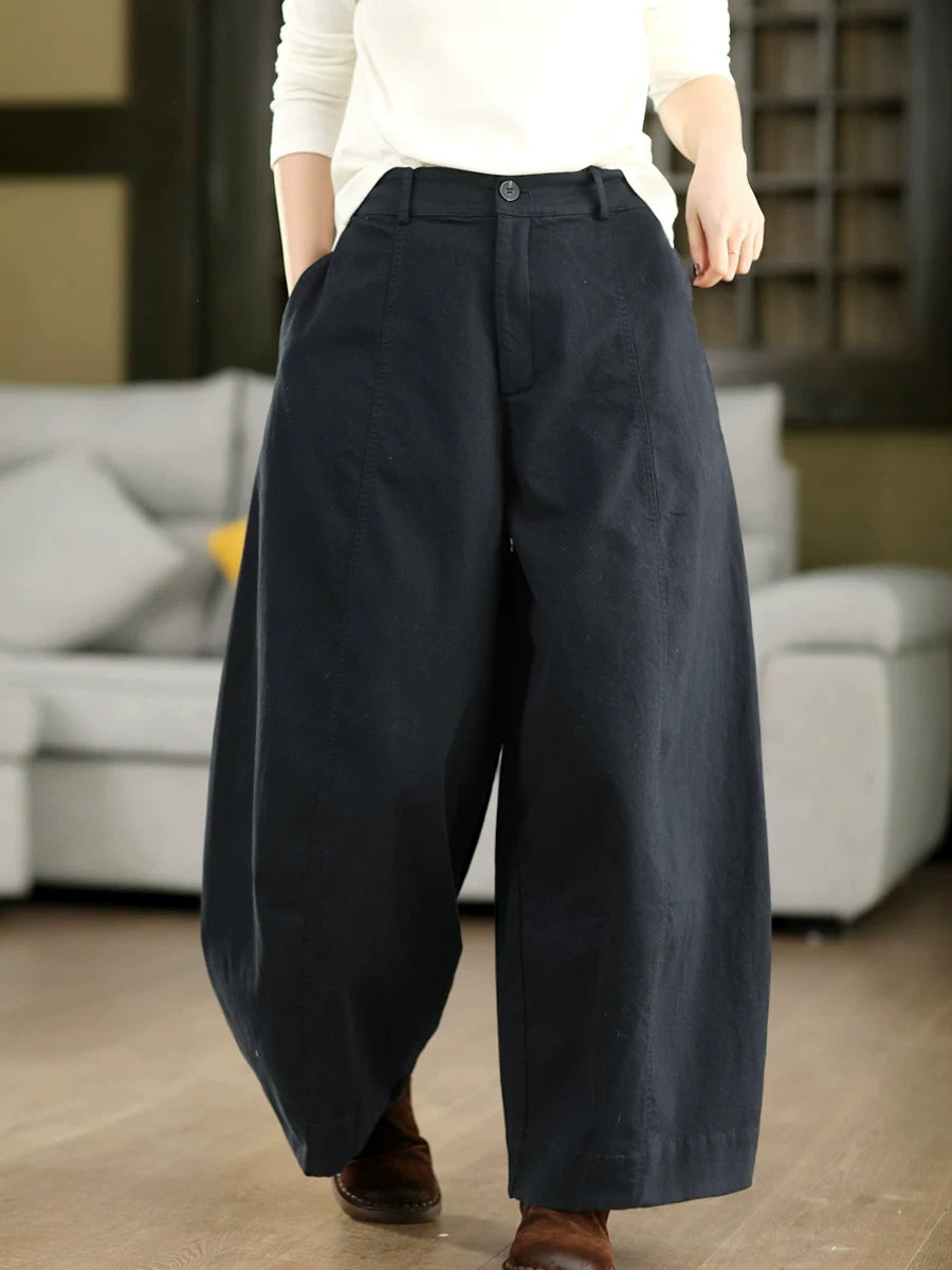 מכנסי כותנה רחבים בגזרה רטרו לנשים באביב