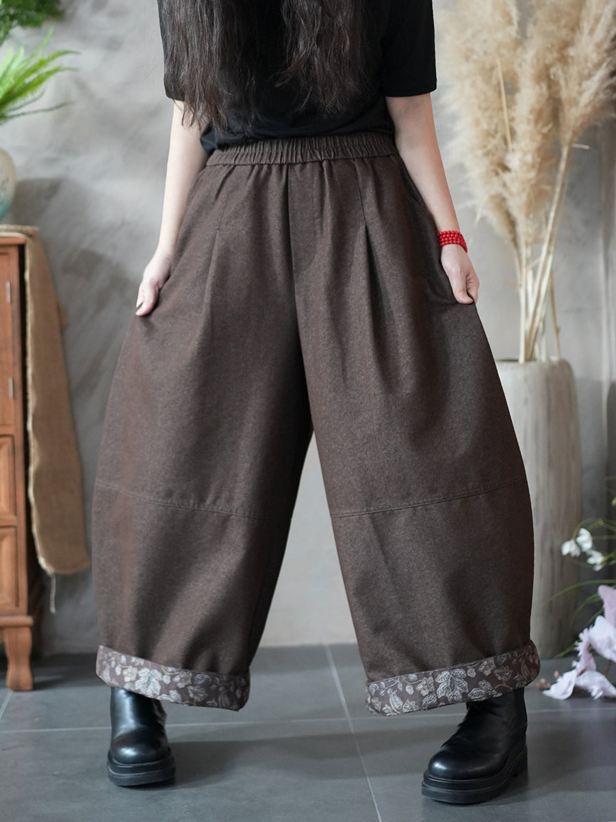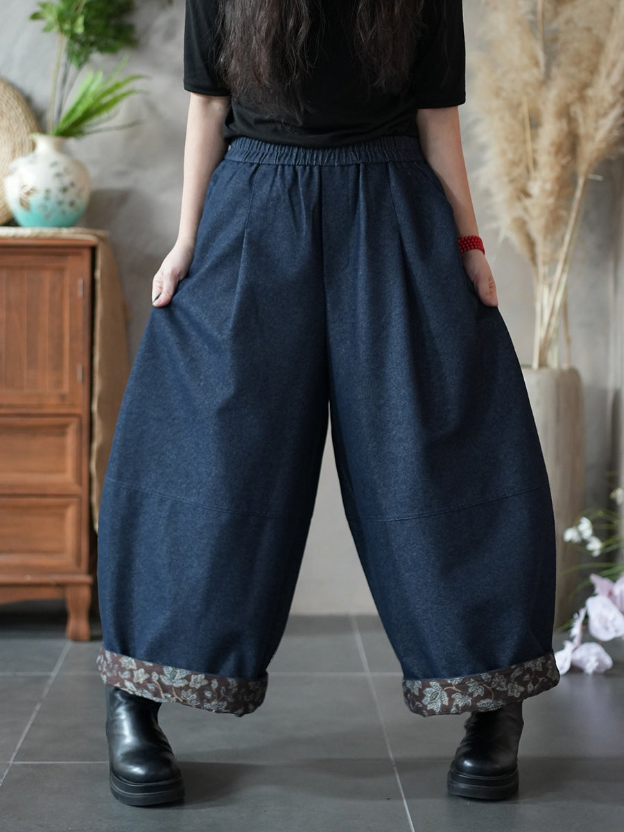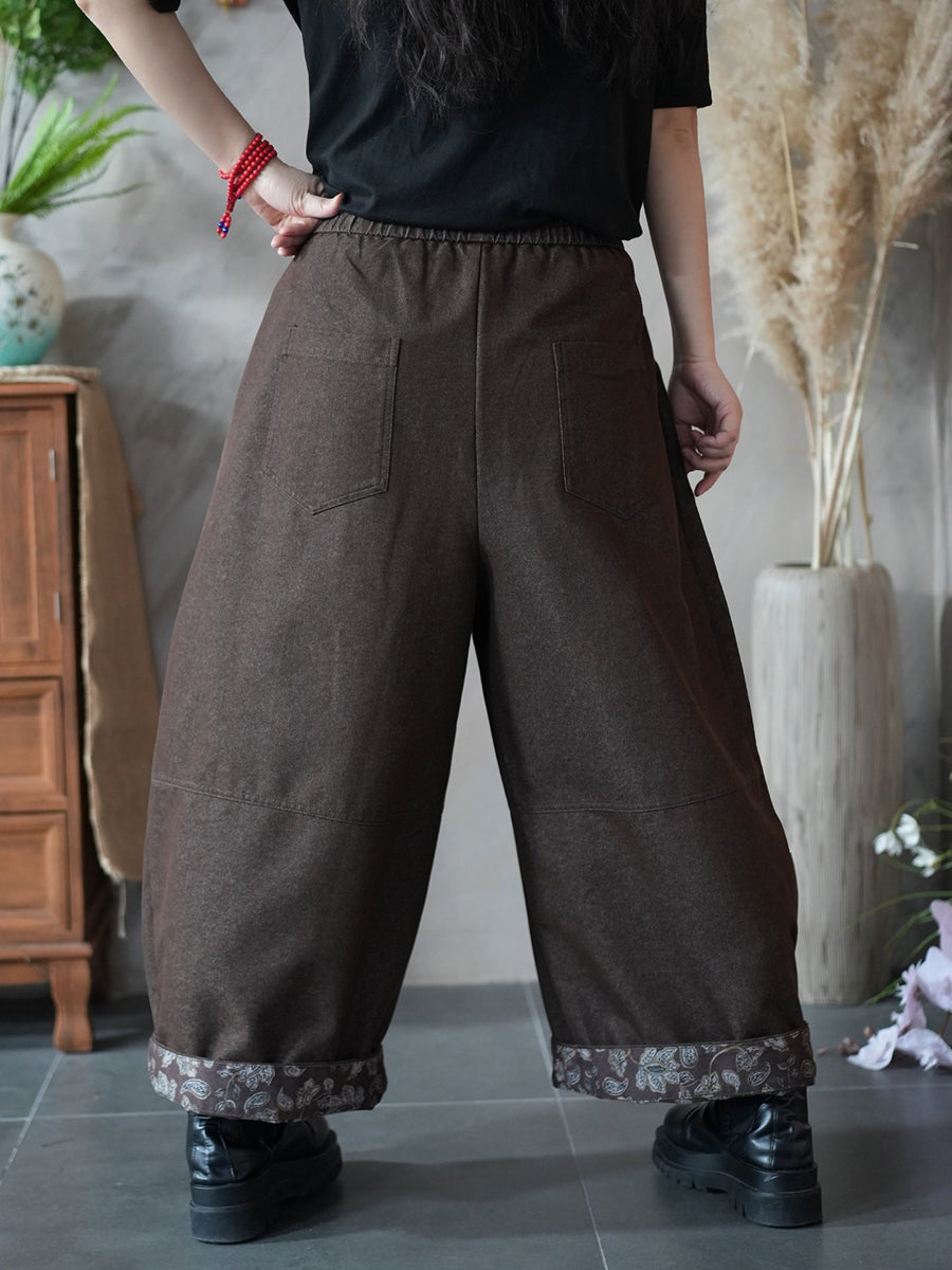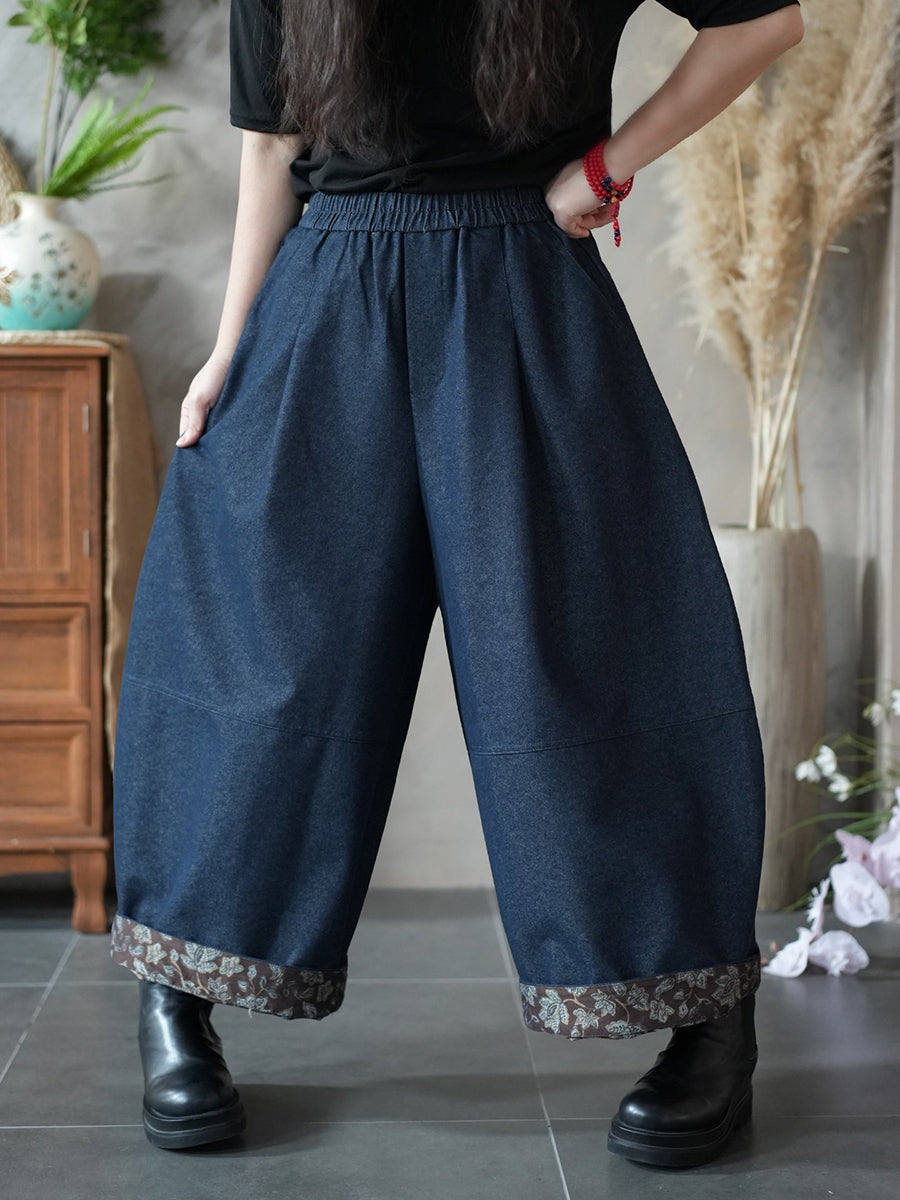 מכנסי גזרה רחבה עם שוליים פרחוניים באביב לנשים