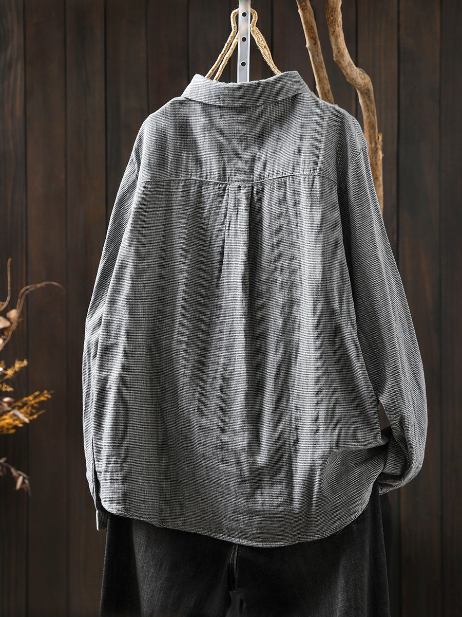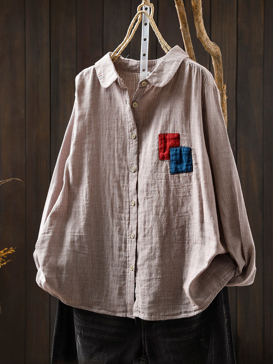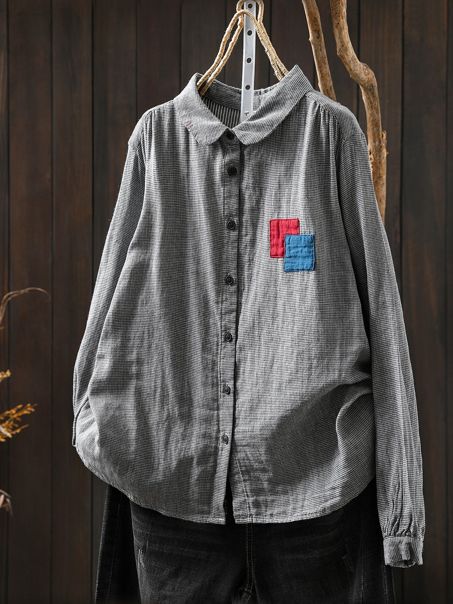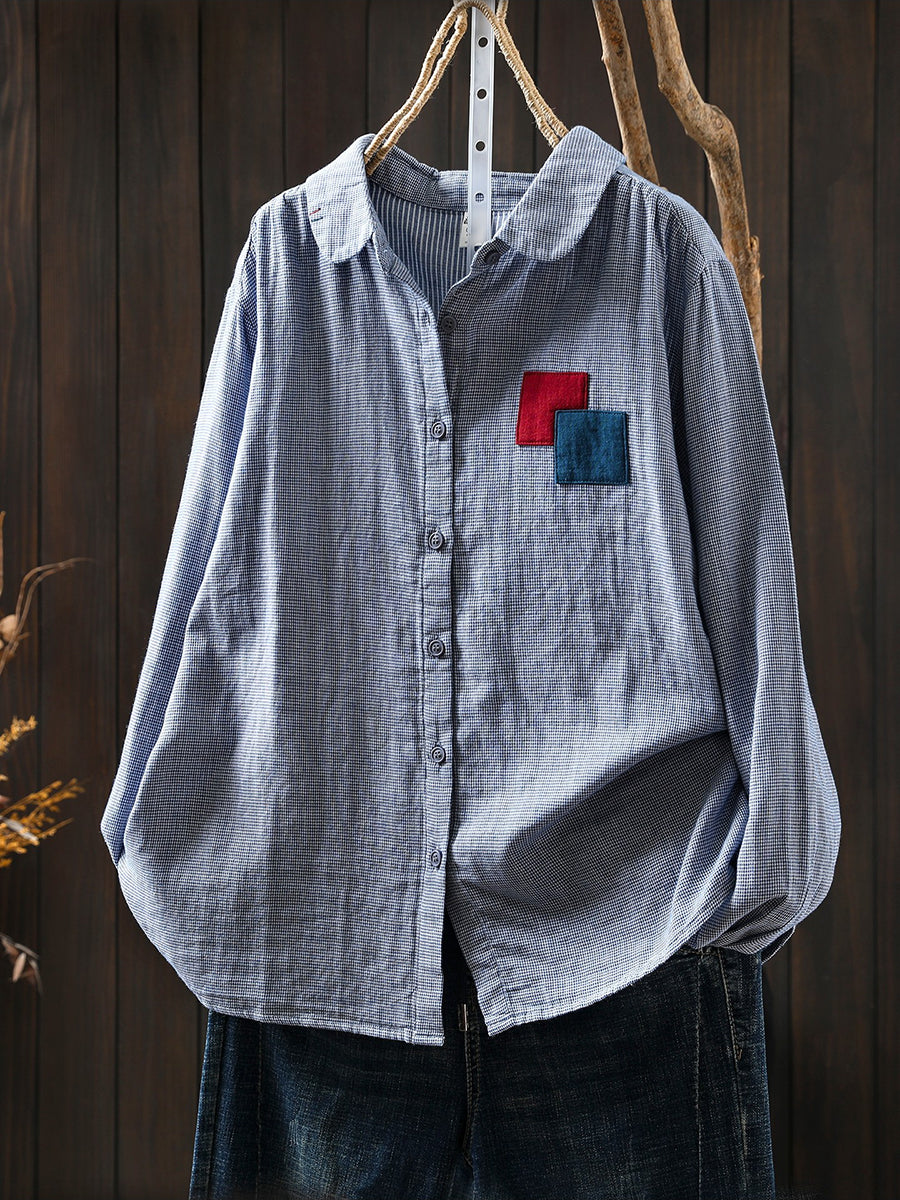 חולצת אביב וינטג' לנשים עם טלאים סריג 100% כותנה