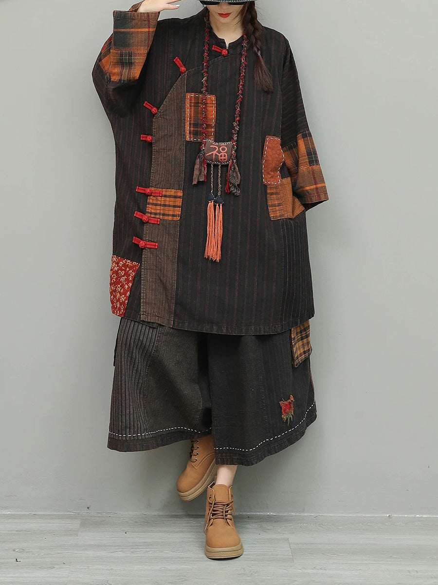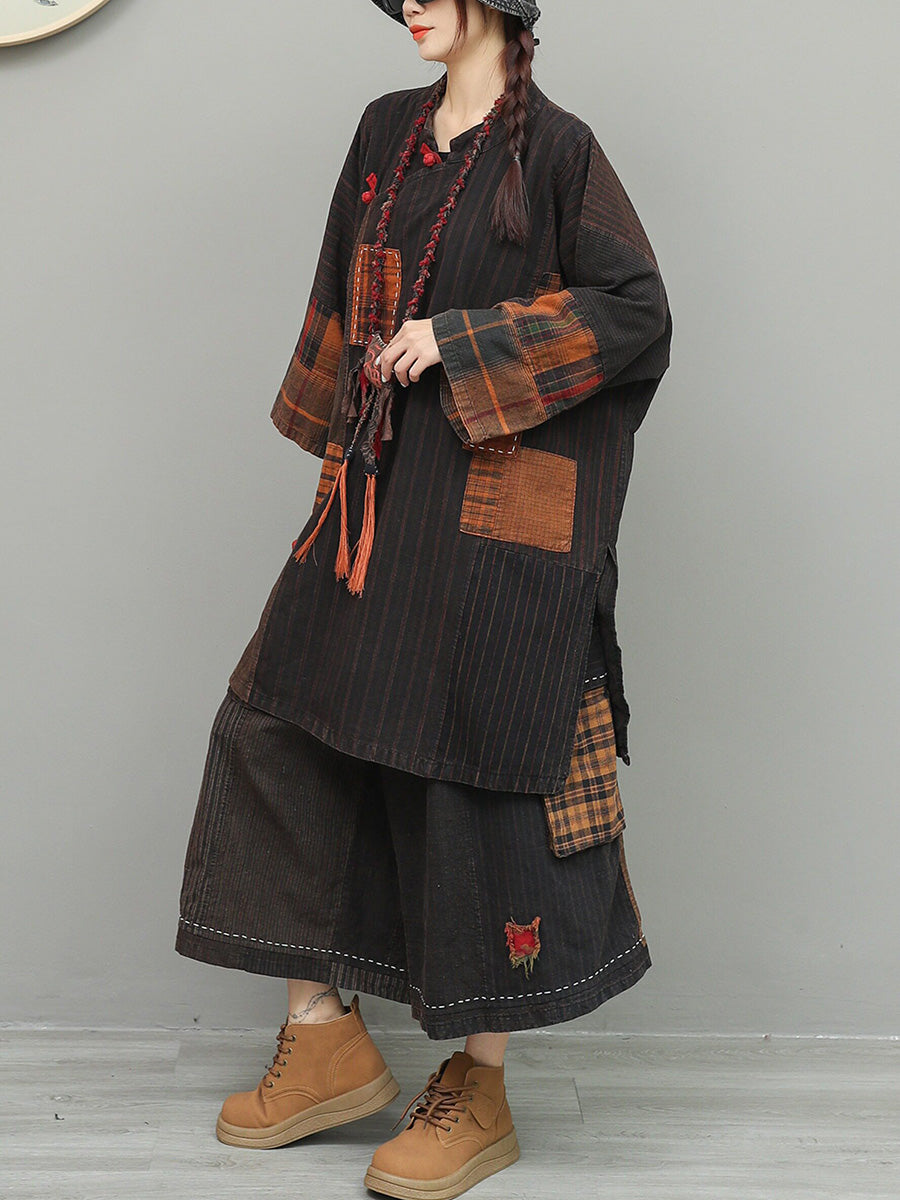 חליפות O-צוואר טלאים וינטג' לנשים באביב