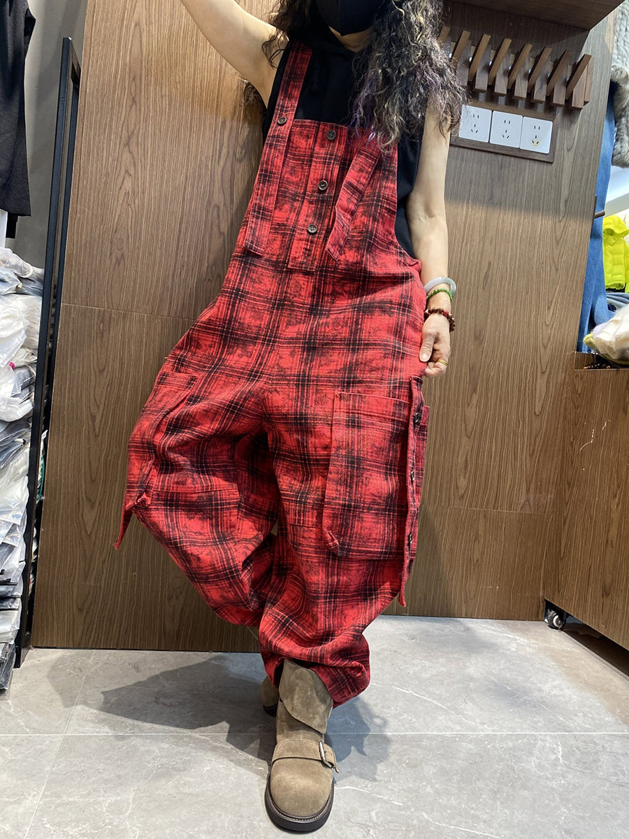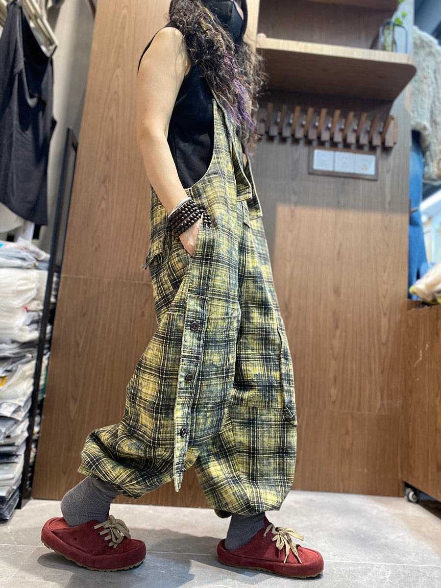 סרבלים משוחררים בסגנון וינטג' משובץ לנשים באביב