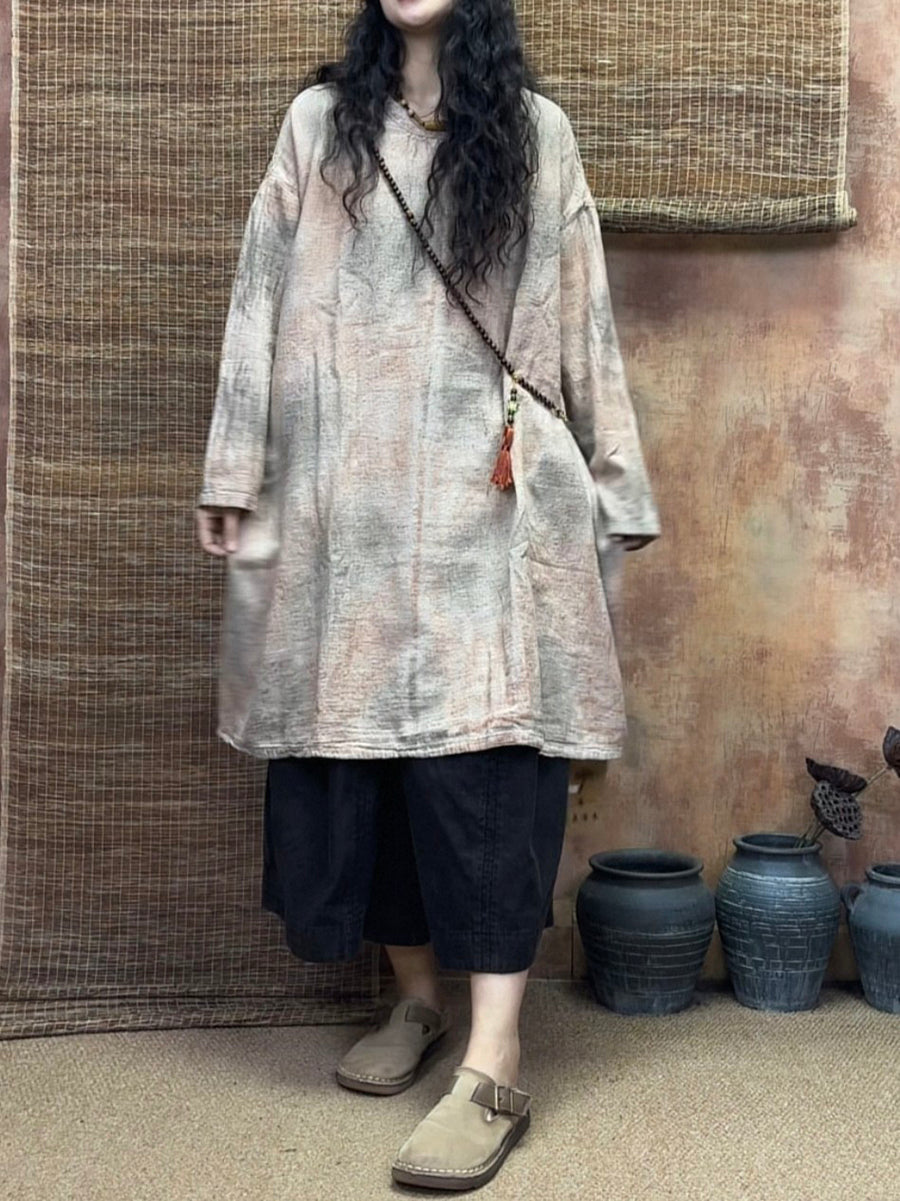 חולצה ארוכה לנשים בסגנון אביב וינטג' בצורת טאי-דיי 100% פשתן