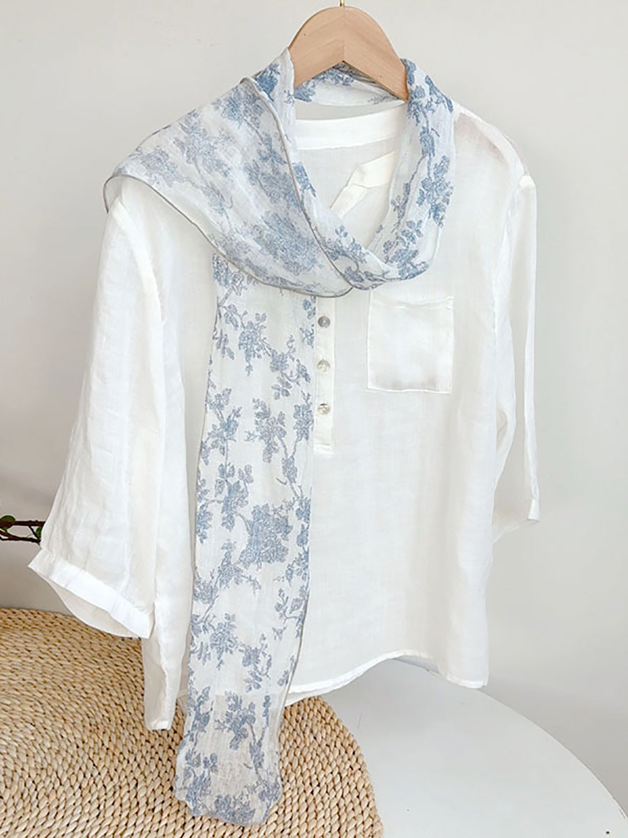 צעיף פשתן דק פרחוני לנשים בקיץ