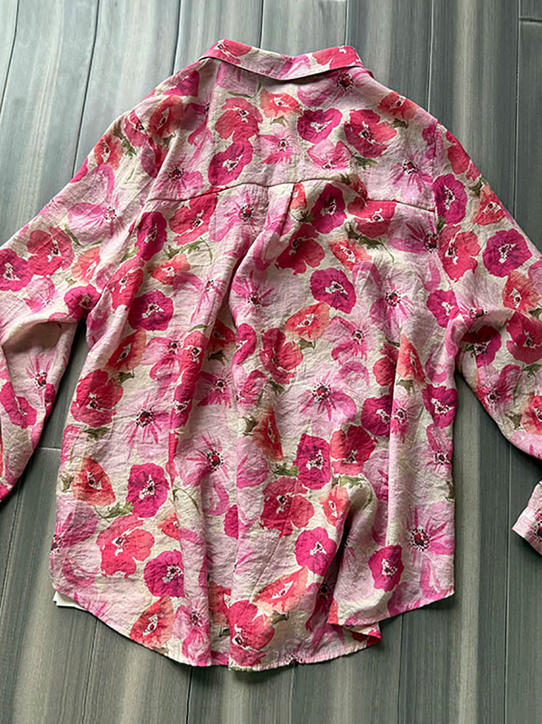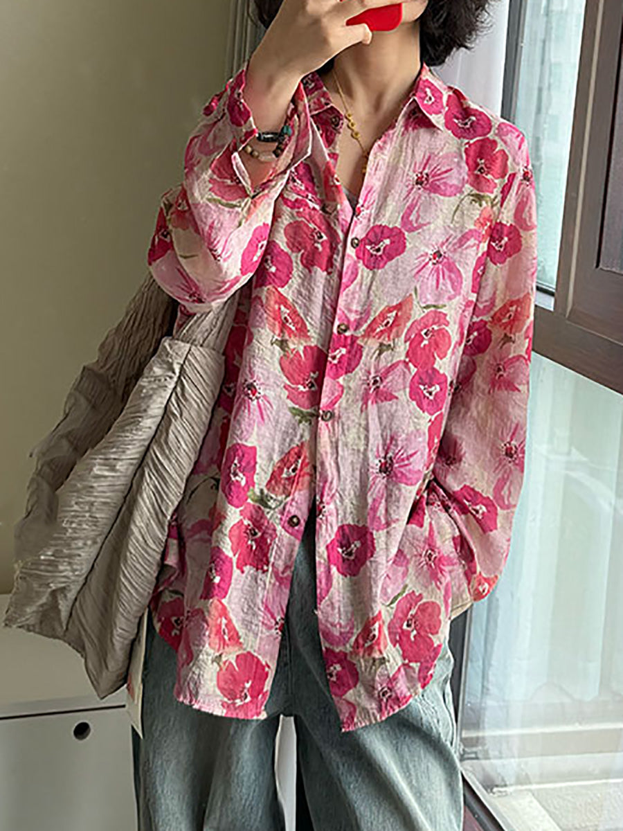 נשים קיץ אמנותי פרח חולצת צווארון מטה