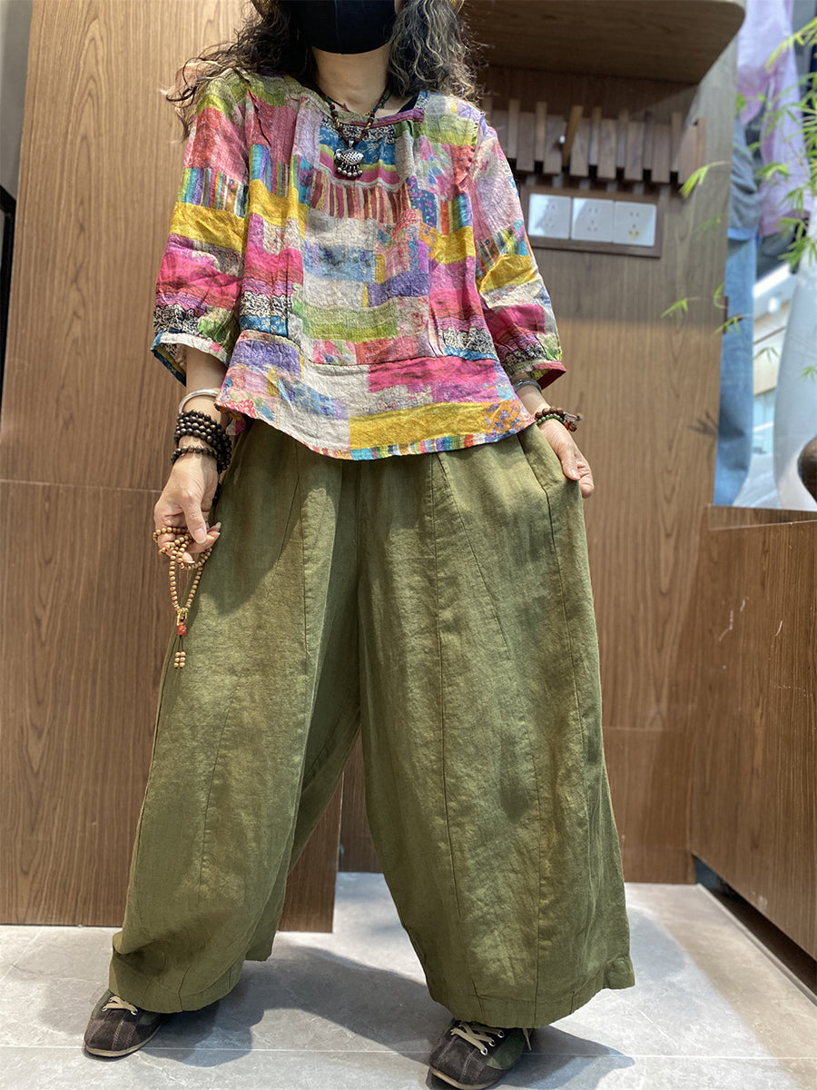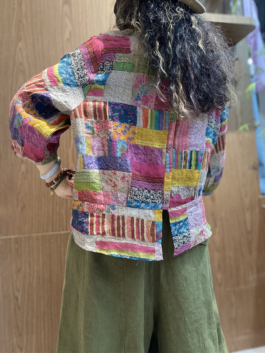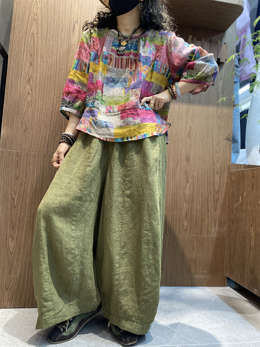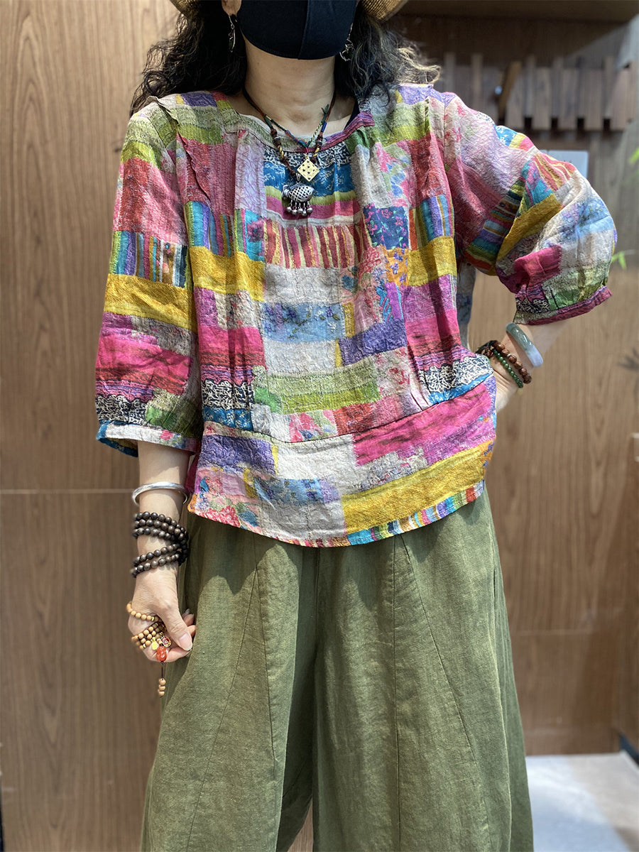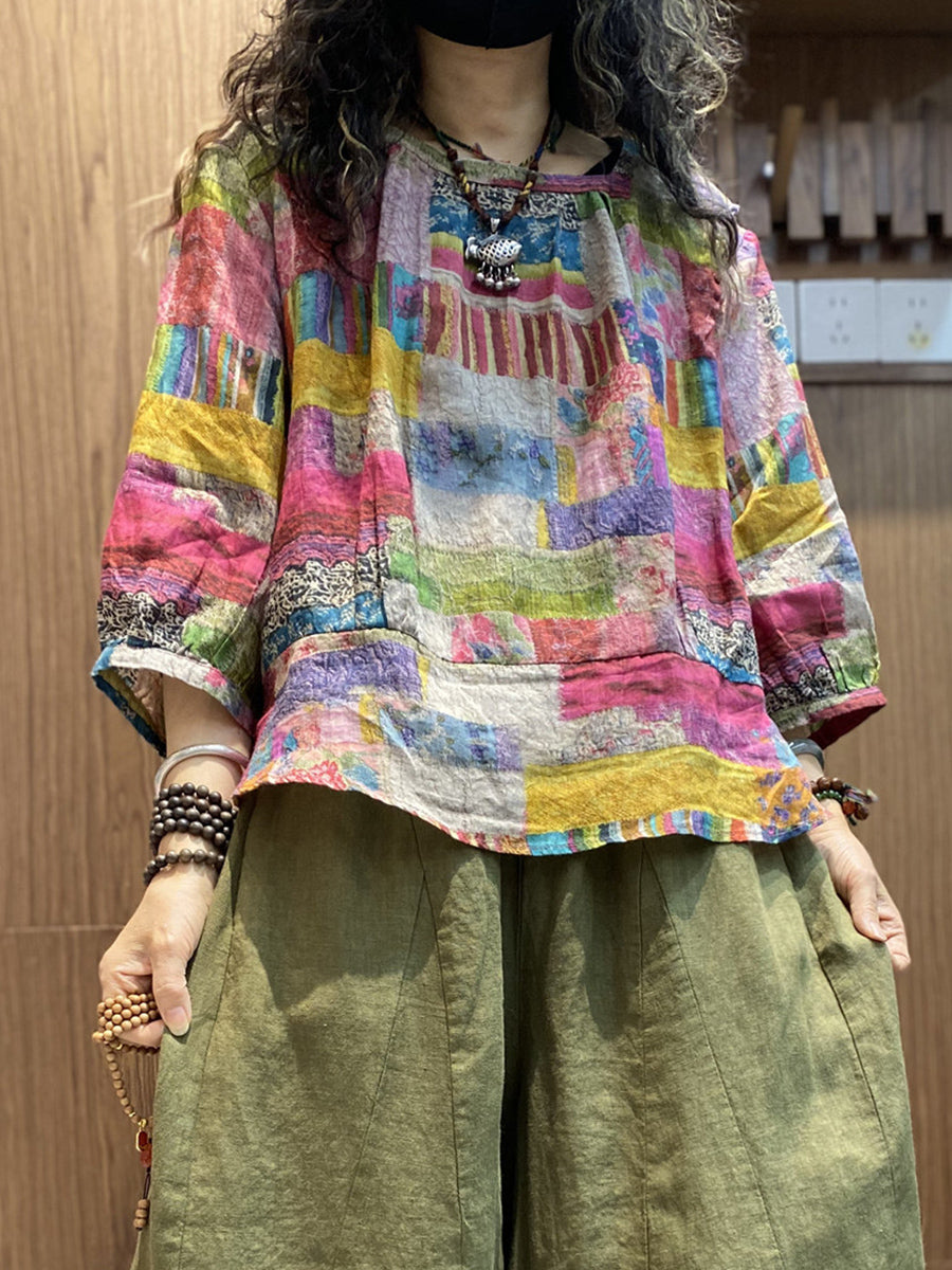 חולצת O-צוואר טלאים אומנותית לקיץ לנשים