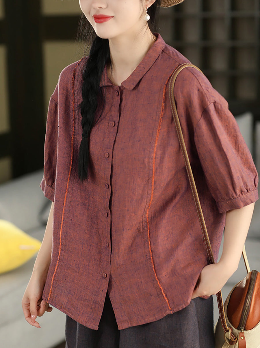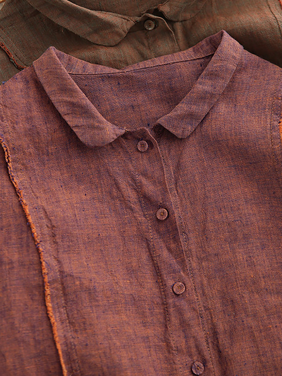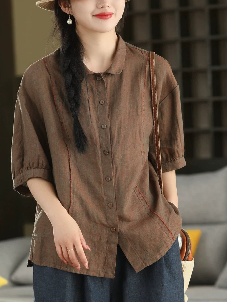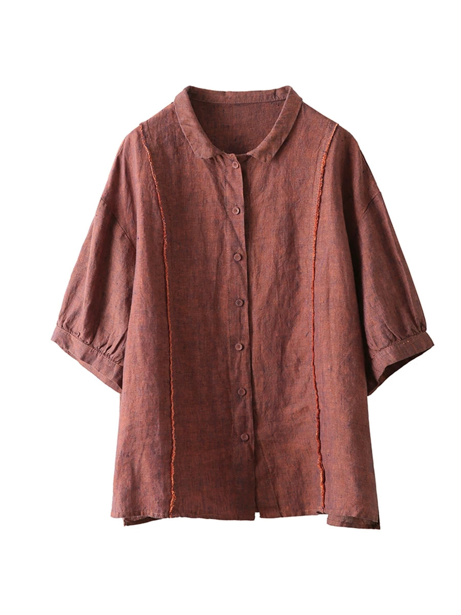 חולצת קיץ לנשים עם שוליים 100% פשתן, מודפסת בסגנון אומנותי