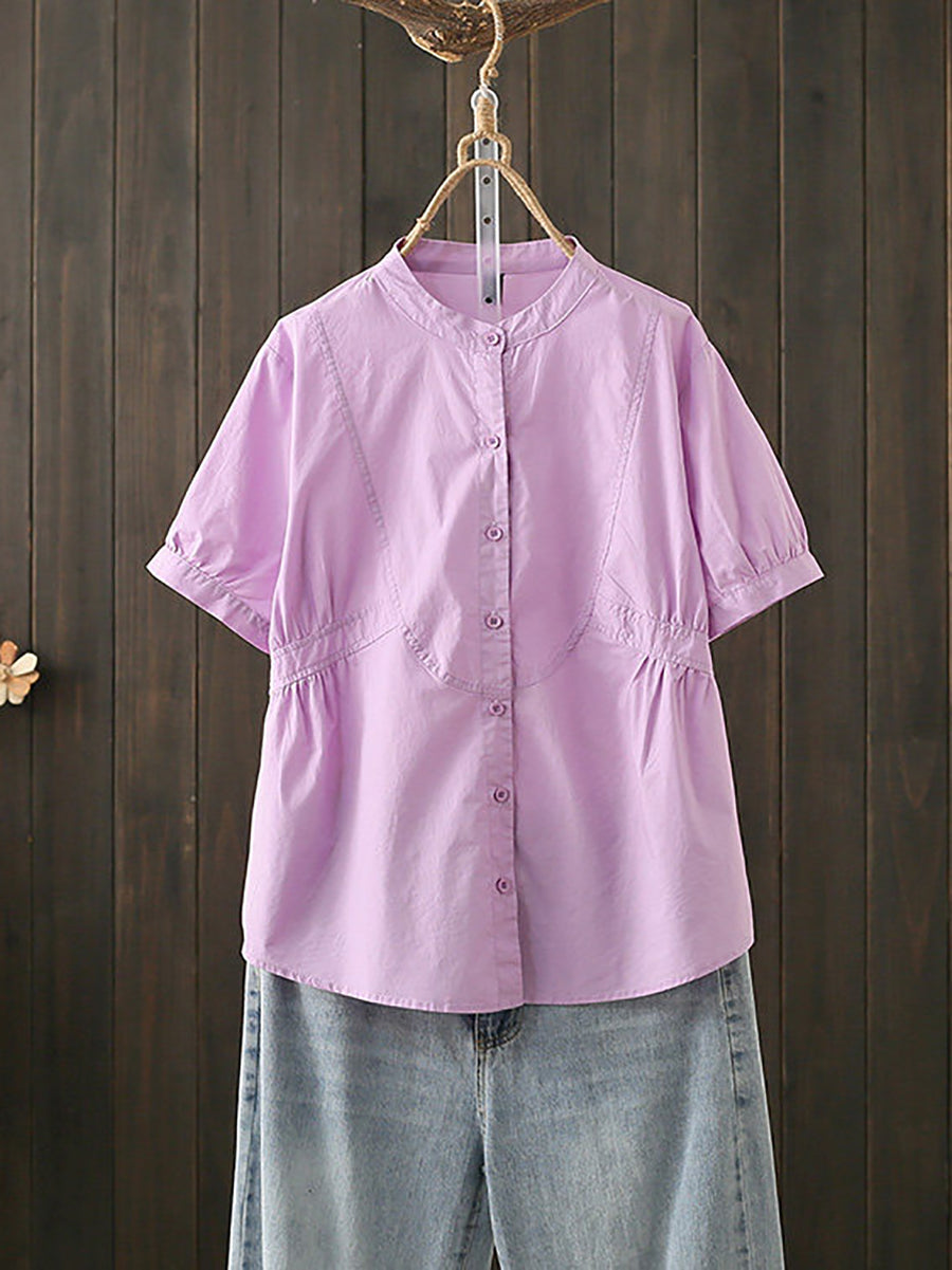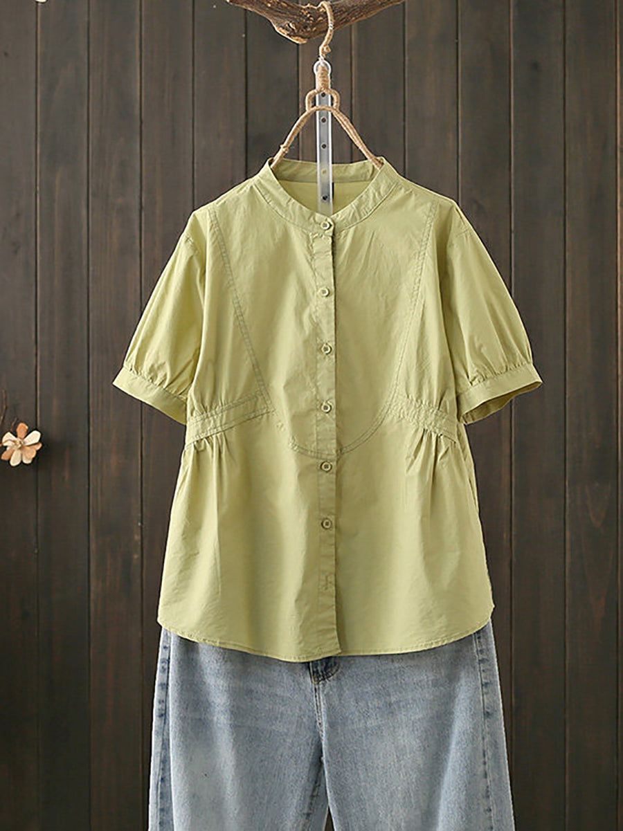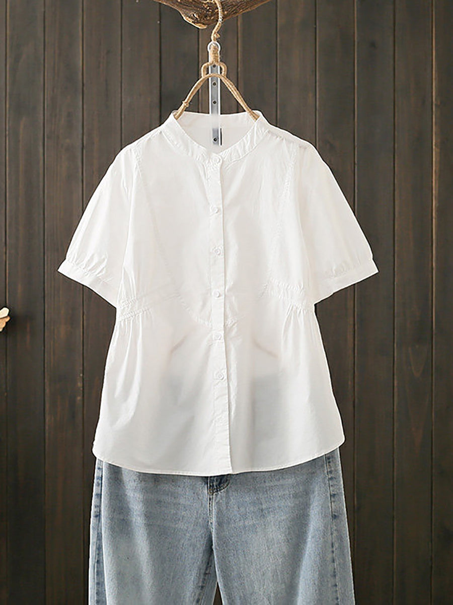 חולצת כותנה עם צווארון עומד לקיץ לנשים