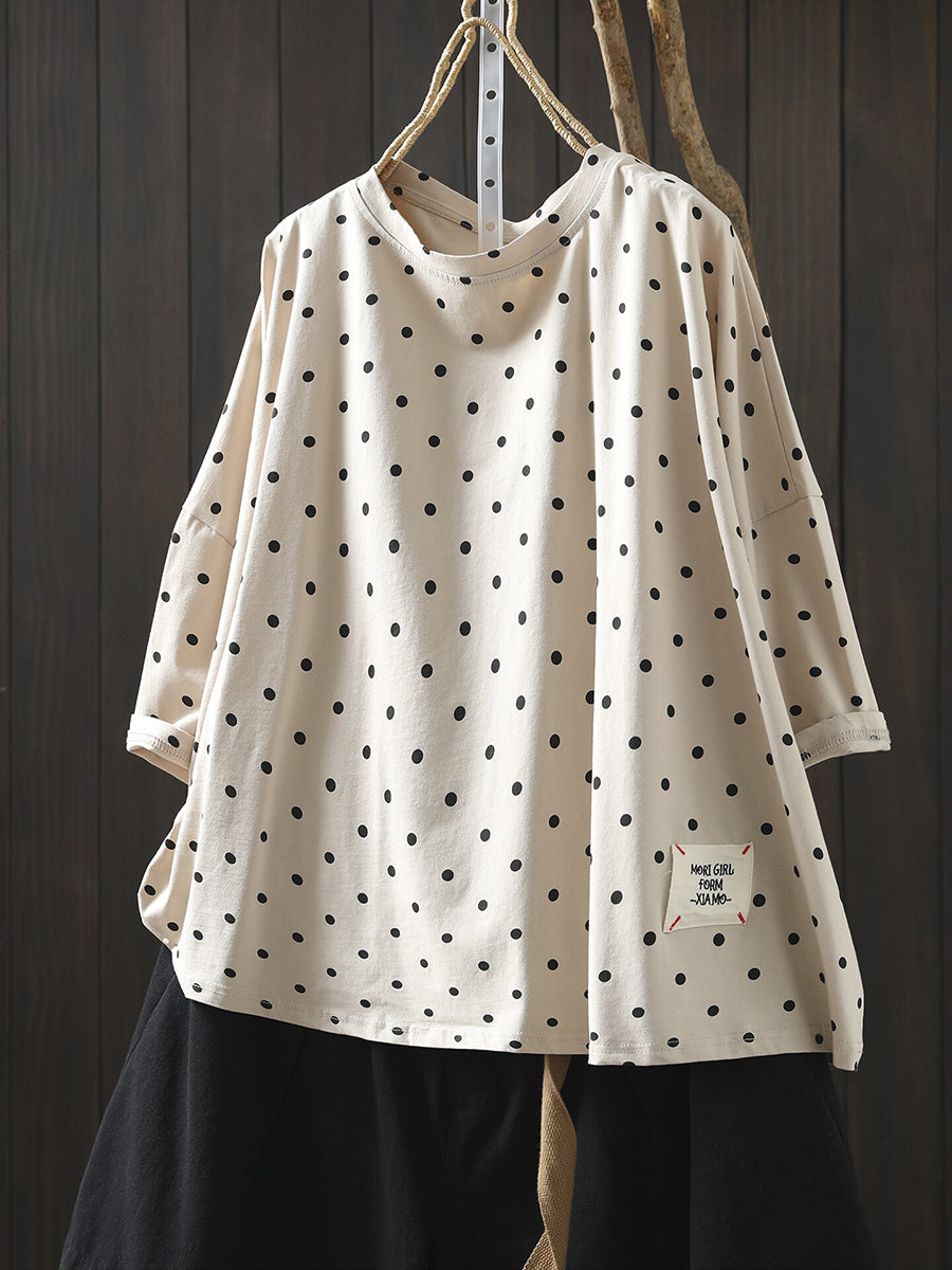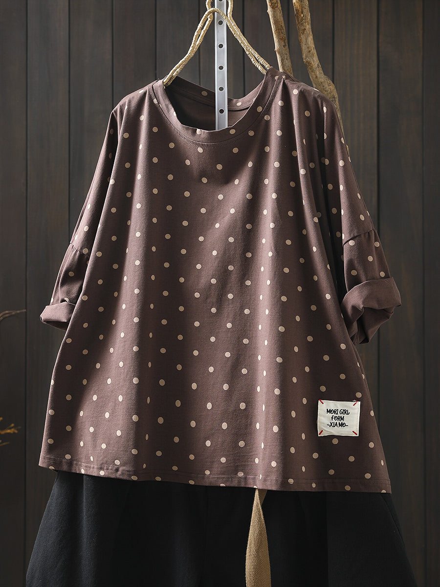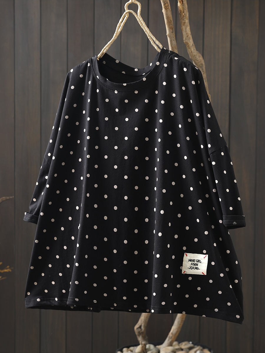 חולצת O-צוואר 100% כותנה עם נקודות לקיץ לנשים