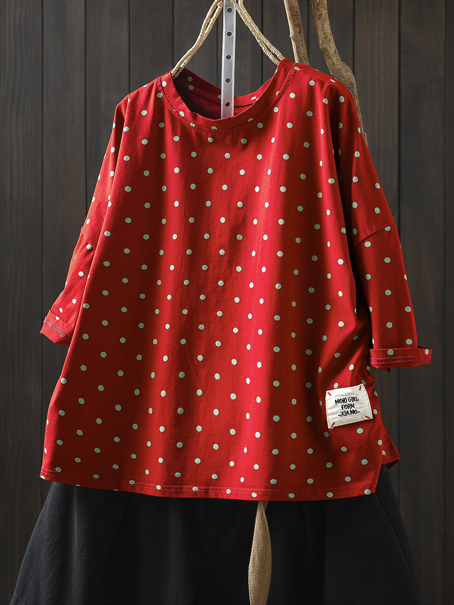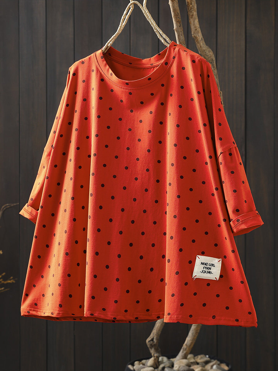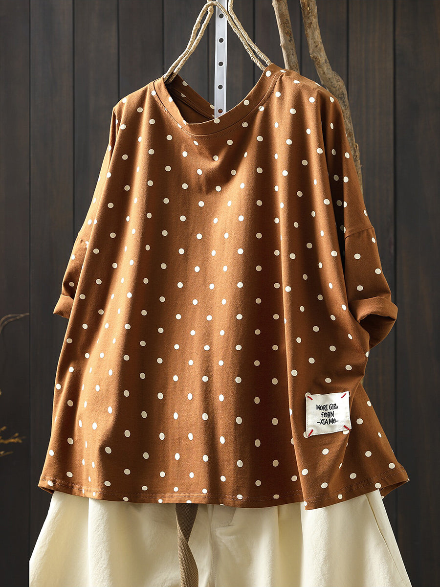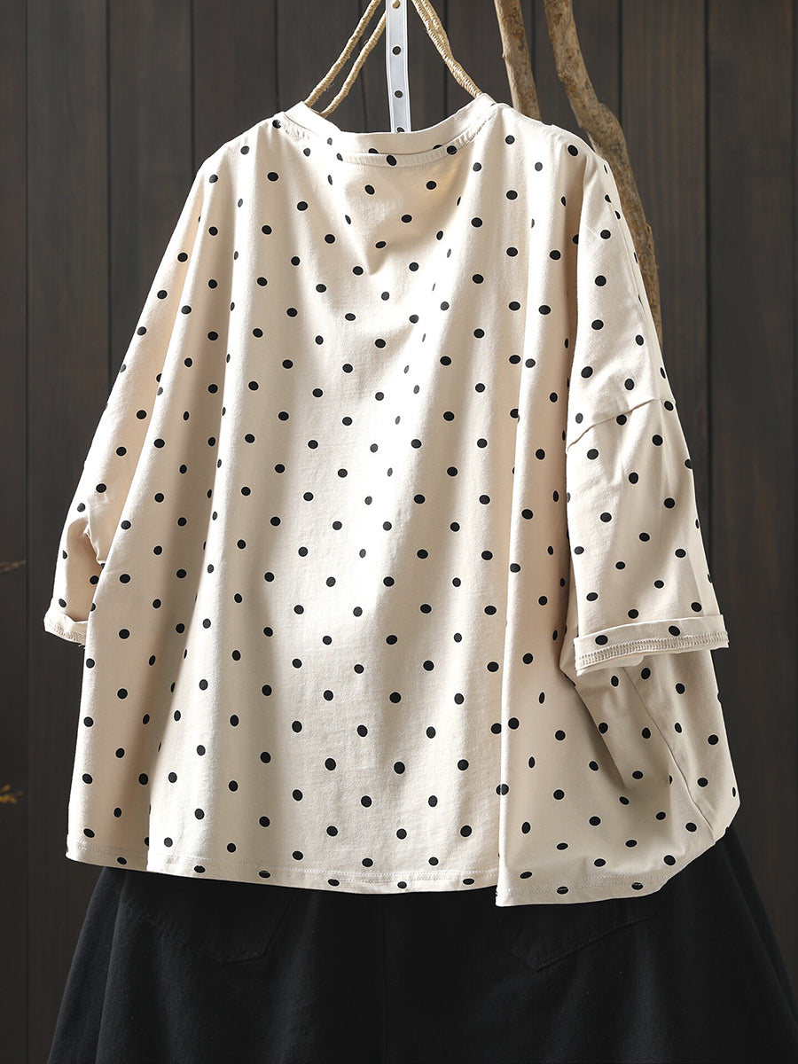 חולצת O-צוואר 100% כותנה עם נקודות לקיץ לנשים