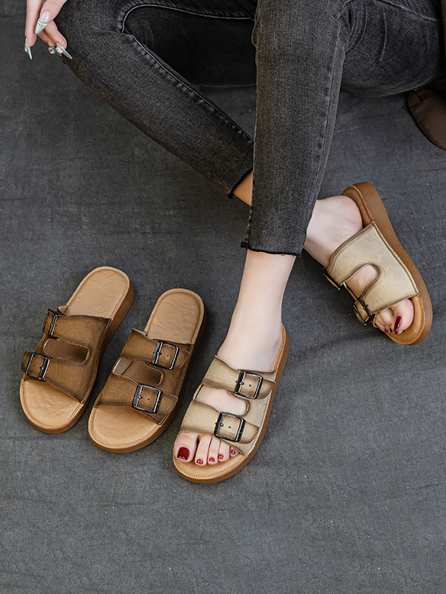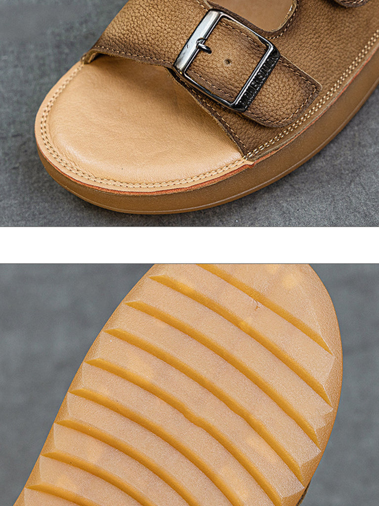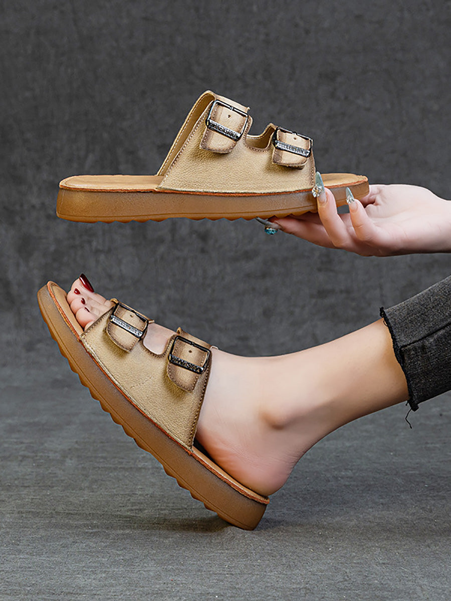 נעלי בית שטוחות מעור אמיתי לקיץ לנשים