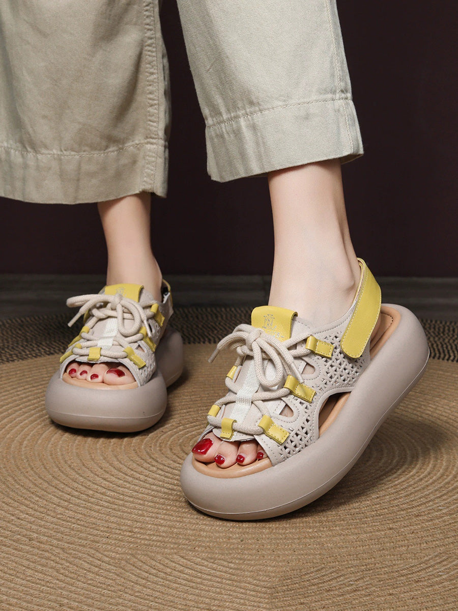 סנדלי פלטפורמה מעור מזדמנים לקיץ לנשים