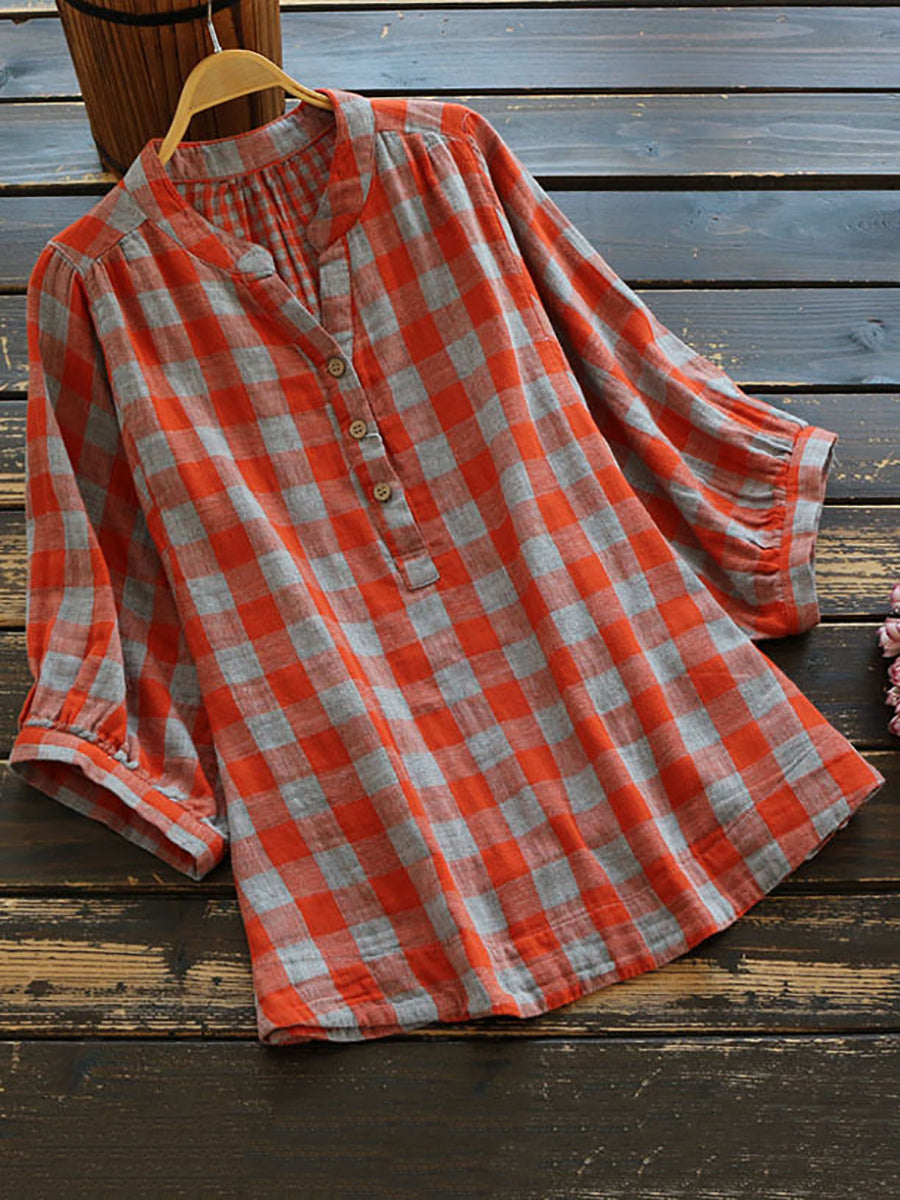 חולצת קיץ מזדמן משובצת דקה 100% כותנה לנשים