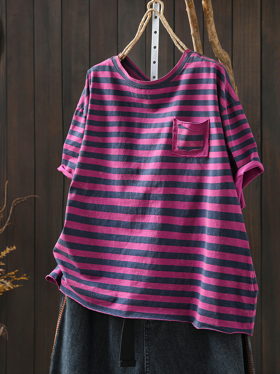 חולצת O-צוואר פסים מזדמנת לקיץ לנשים