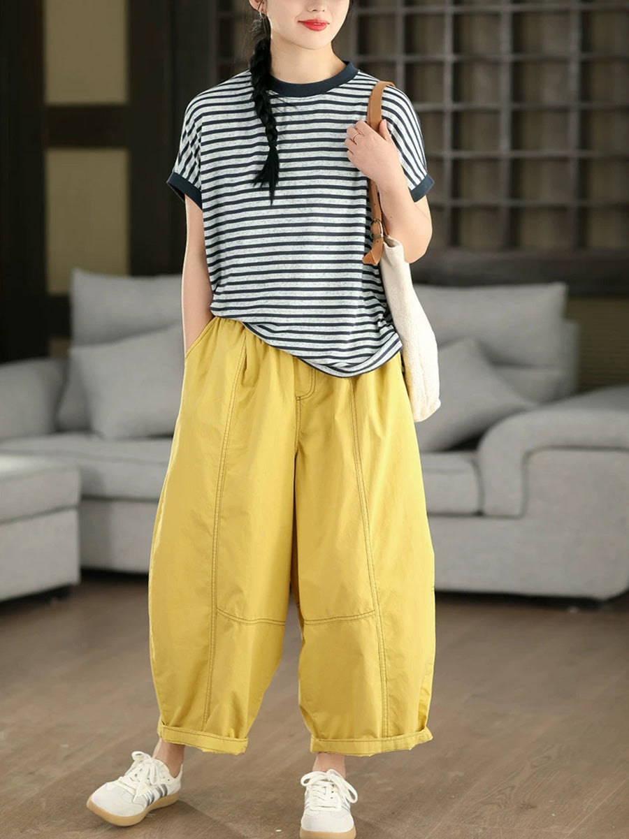 חולצת O-צוואר פסים מזדמנת לקיץ לנשים