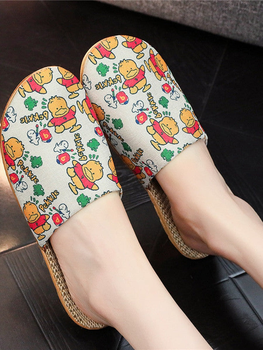 נעלי בית פשתן עבות עם סוליה פרחונית מודפסת לנשים בקיץ