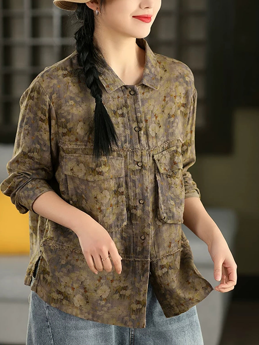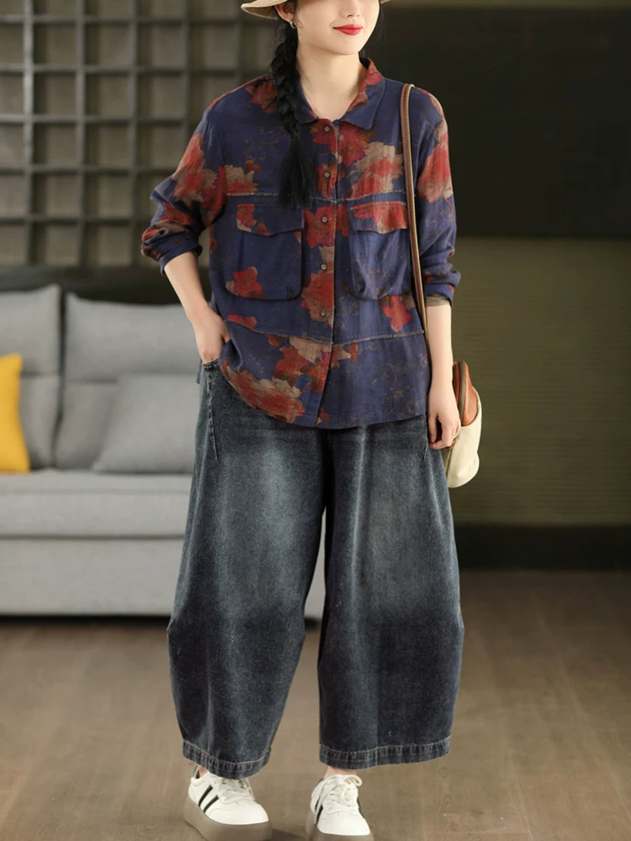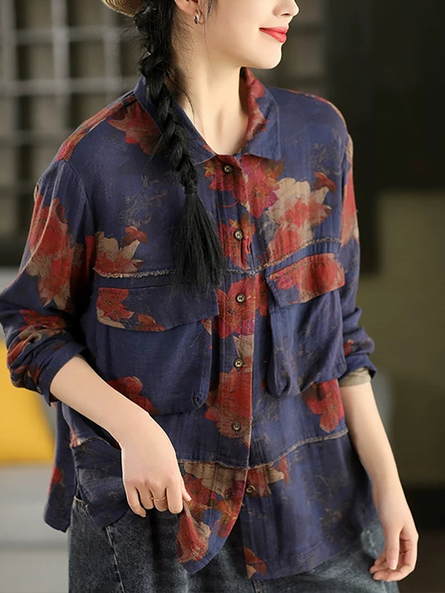 חולצת קיץ לנשים עם צווארון פרחוני 100% כותנה