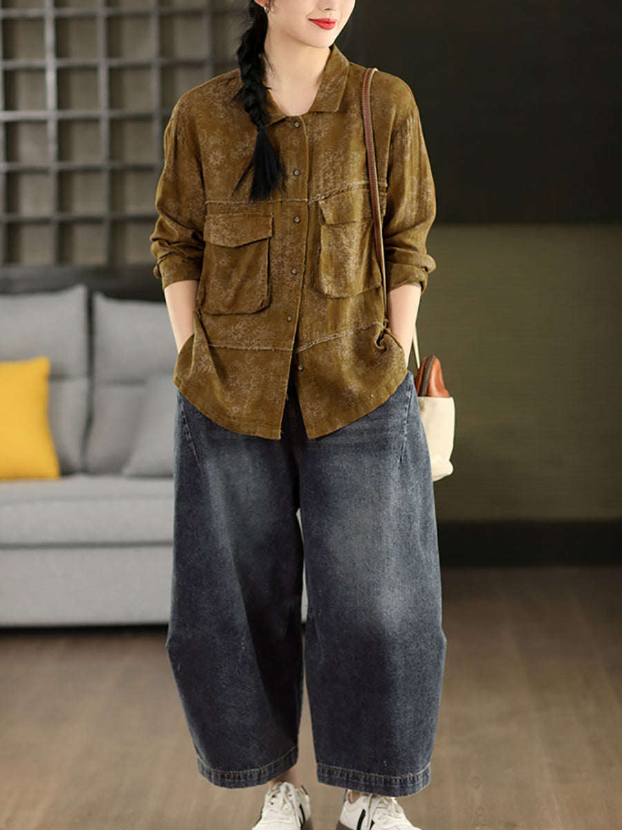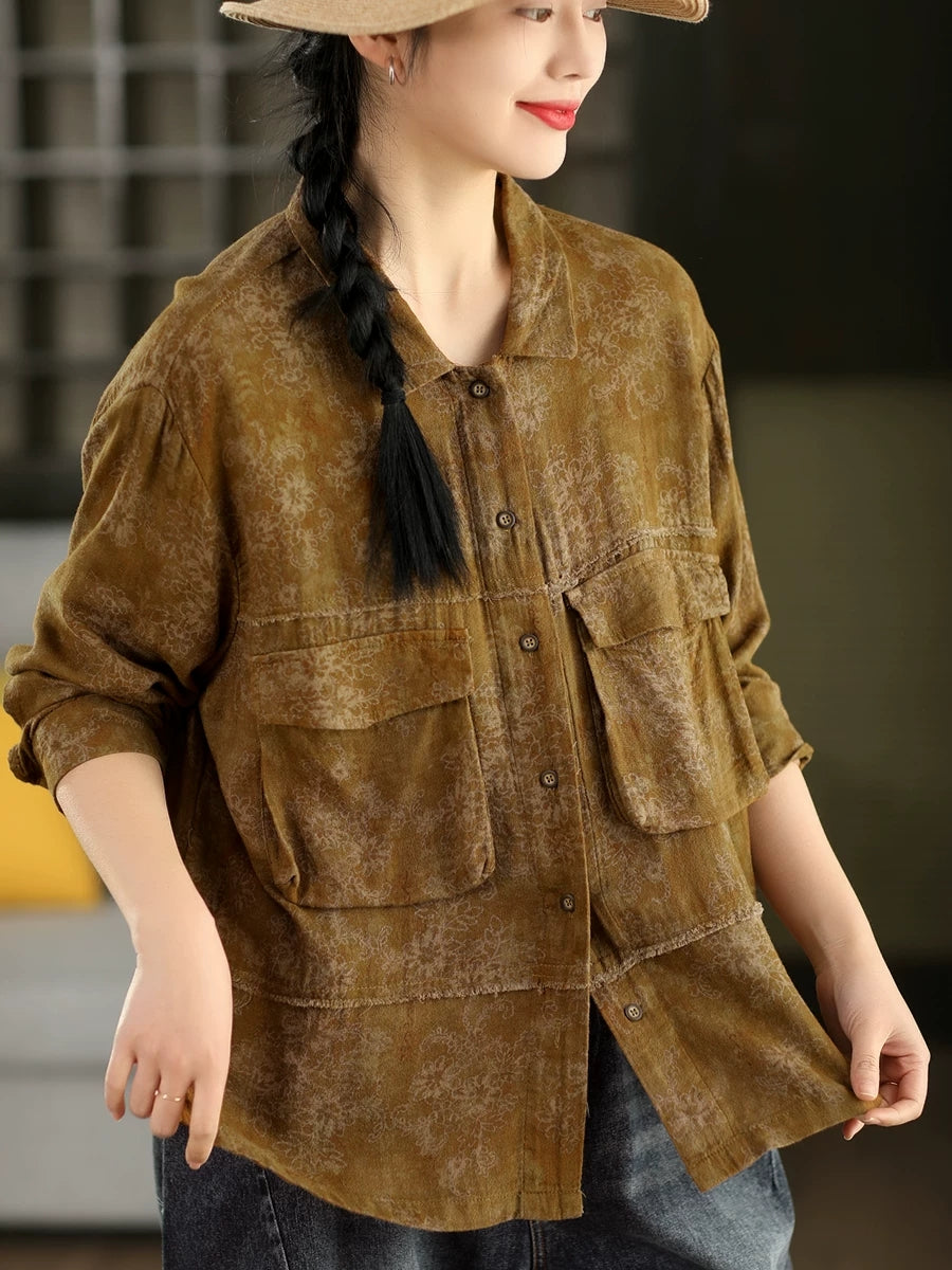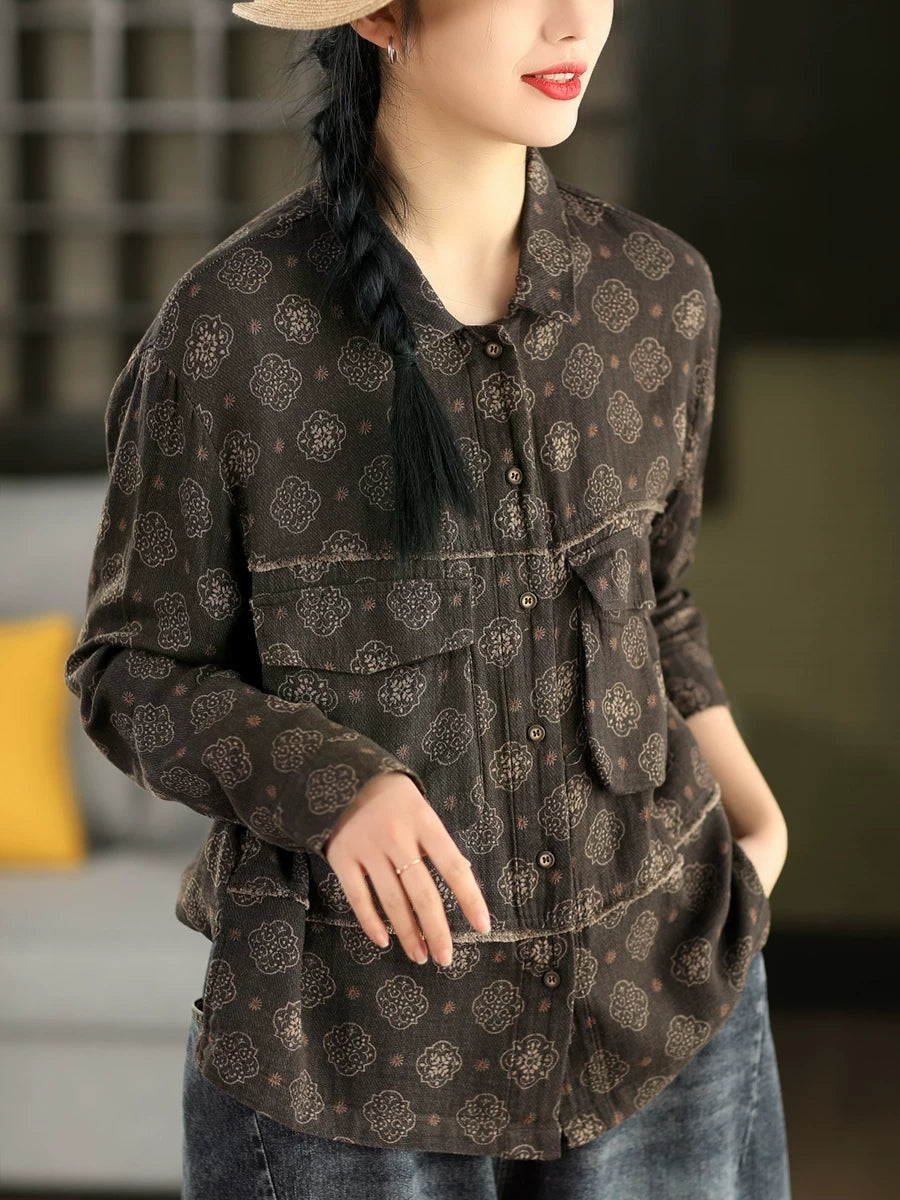 חולצת קיץ לנשים עם צווארון פרחוני 100% כותנה