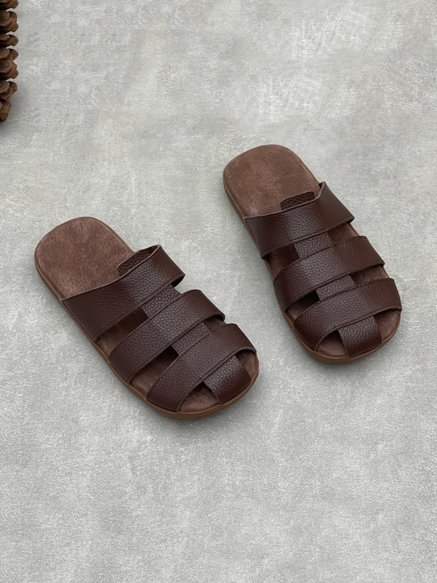 נעלי בית שטוחות מעור אמיתי לקיץ לנשים