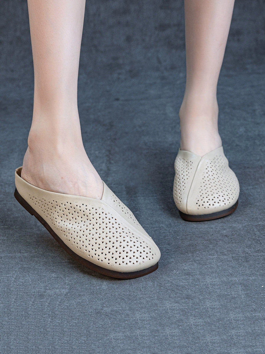 נעלי בית שטוחות מעור אמיתי לקיץ לנשים