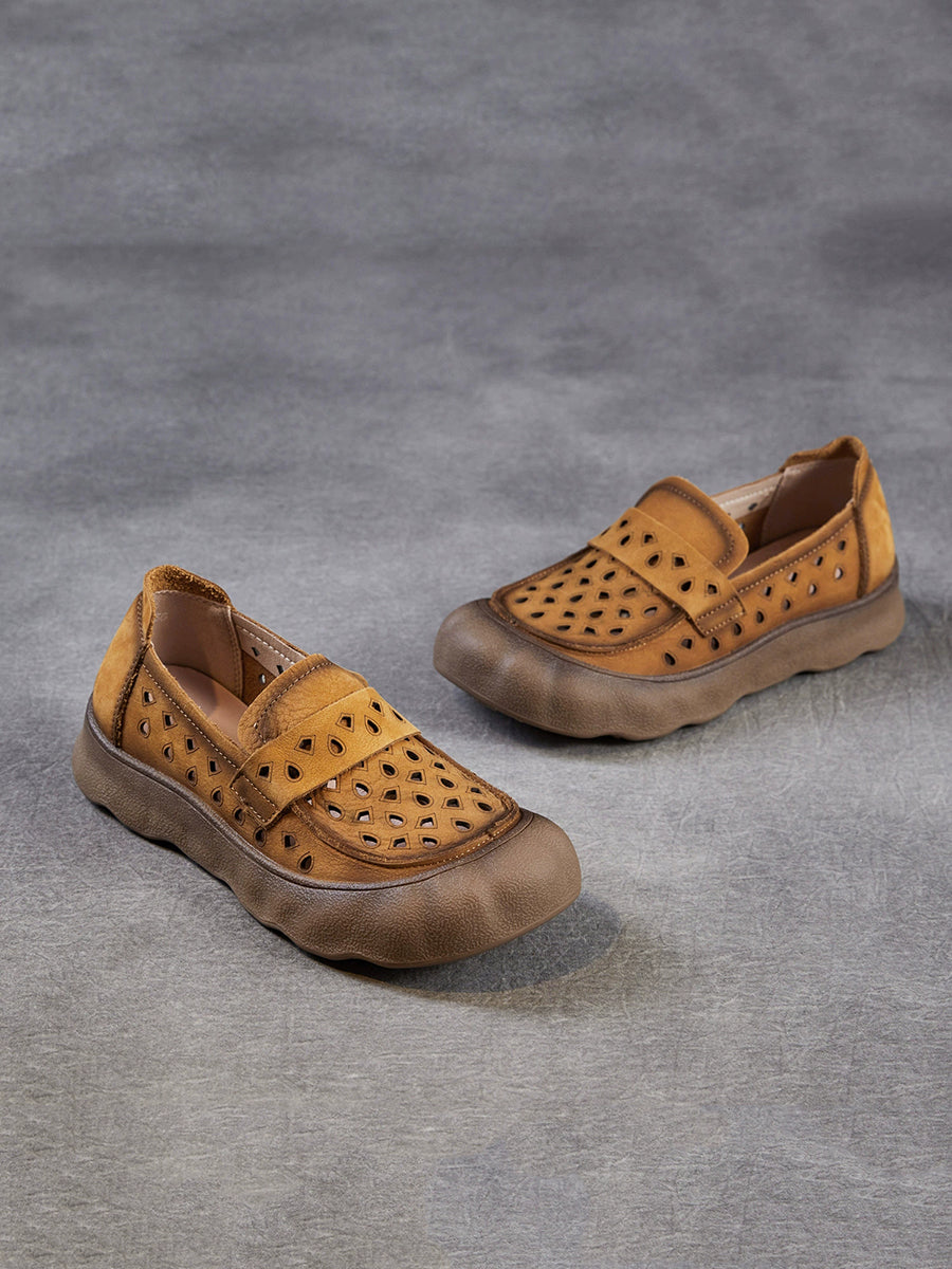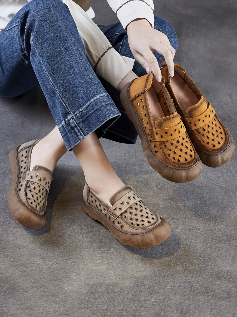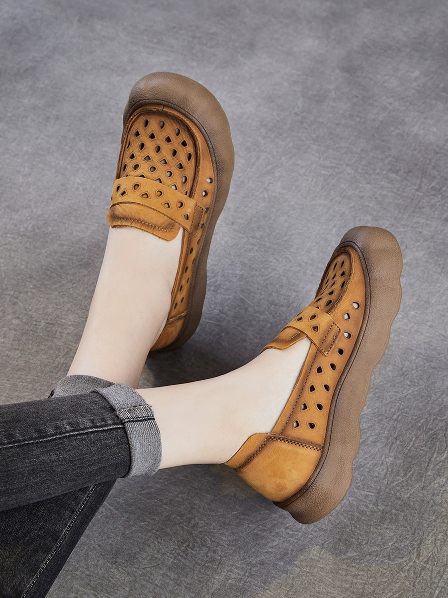 נעליים שטוחות חלולות מעור אמיתי לקיץ לנשים
