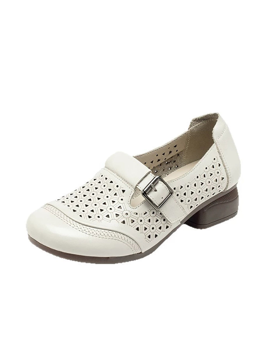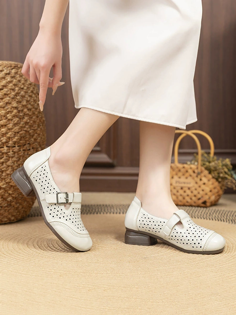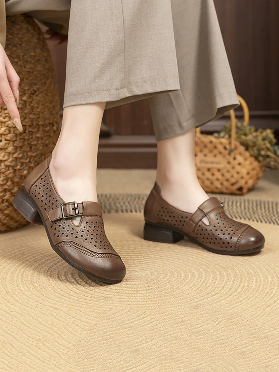 נעלי קיץ מעור אמיתי עם עקבים נמוכים לנשים