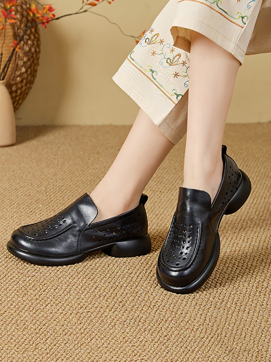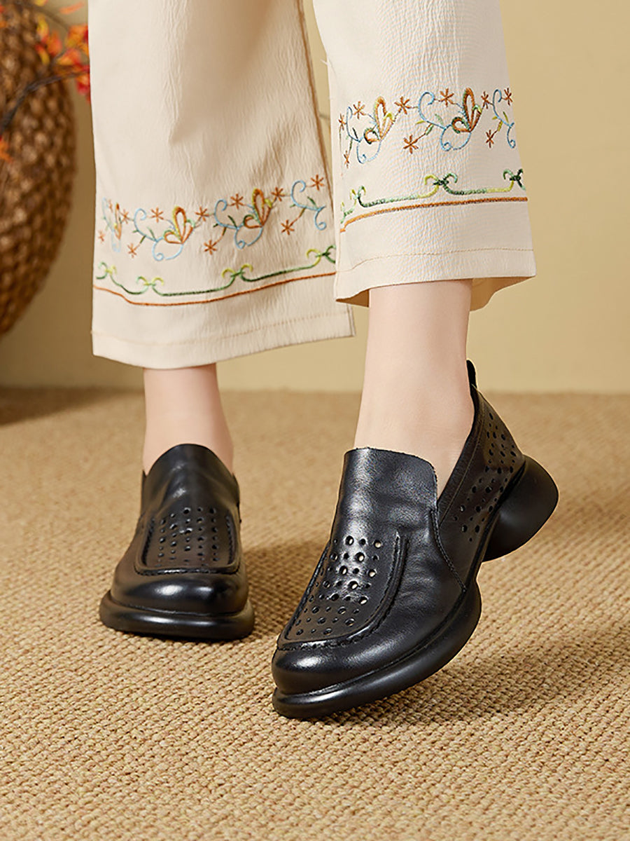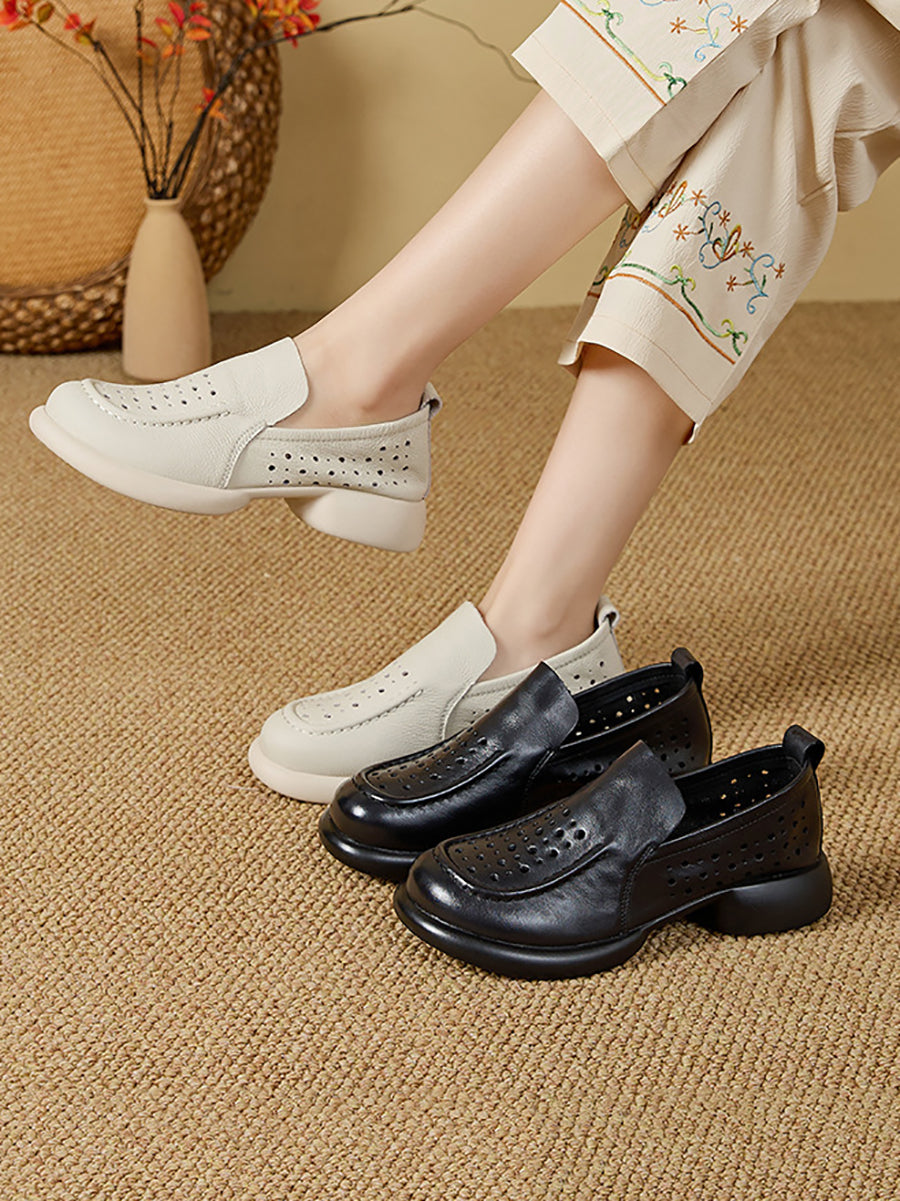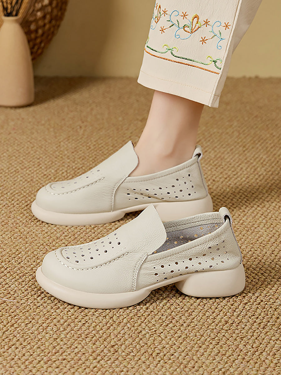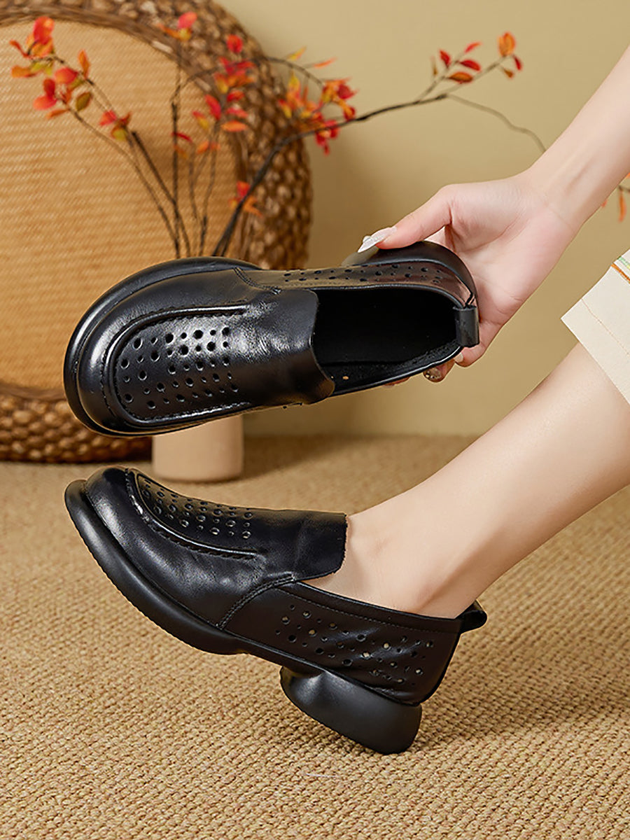 נעלי קיץ מעור אמיתי עם עקב נמוך לנשים