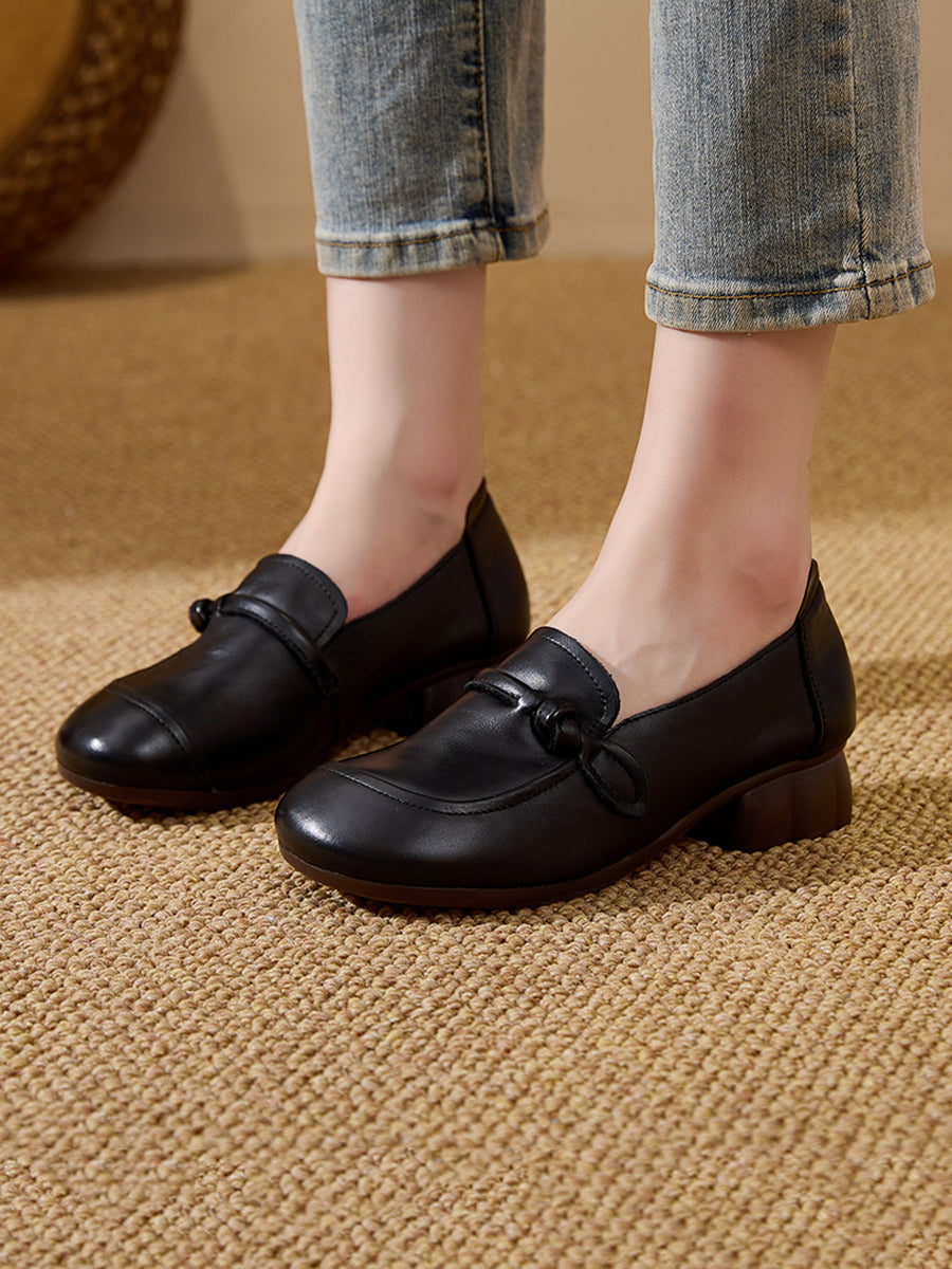 נעלי קיץ מעור אמיתי עם עקב בינוני