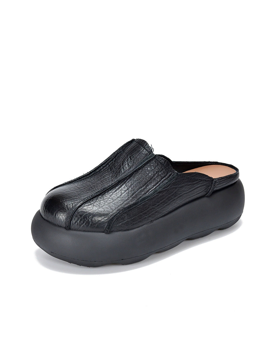 נעלי בית פלטפורמה מעור אמיתי לקיץ לנשים