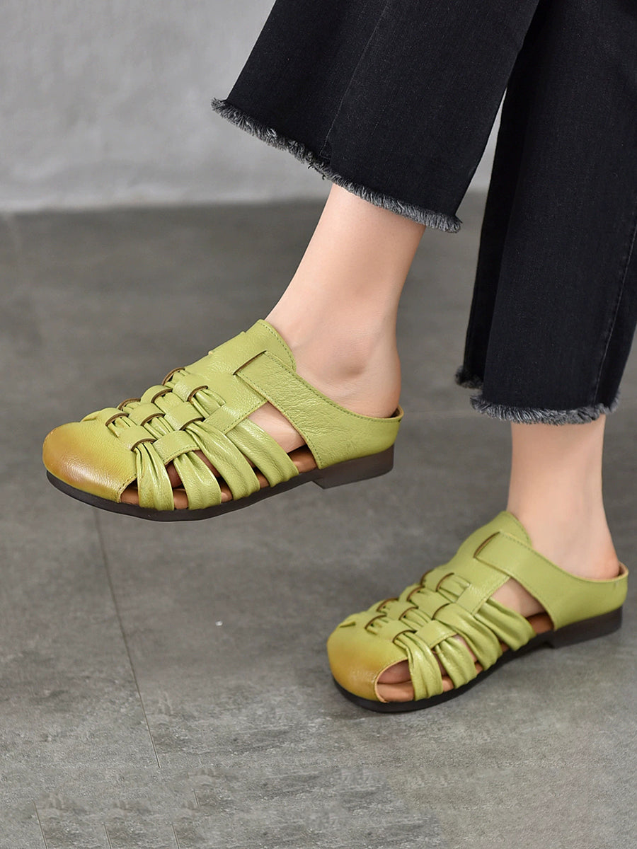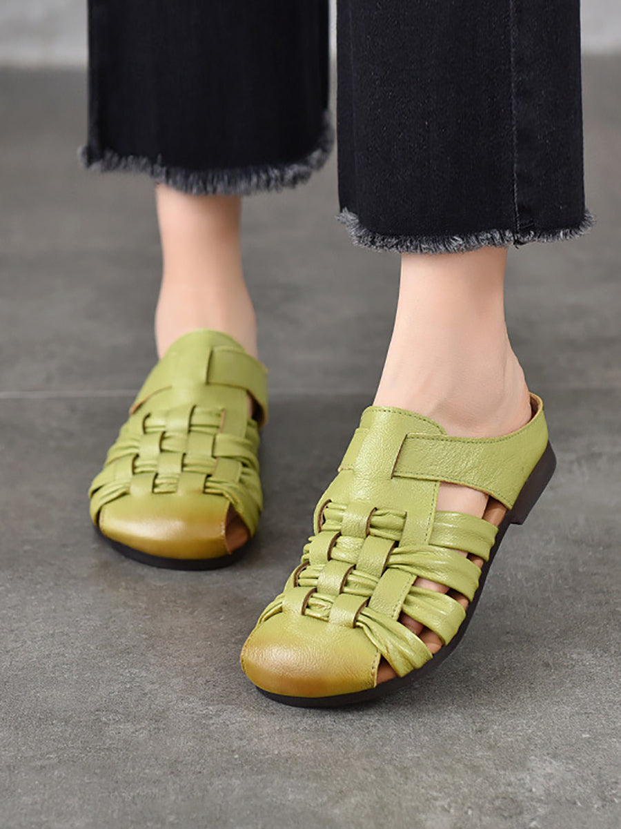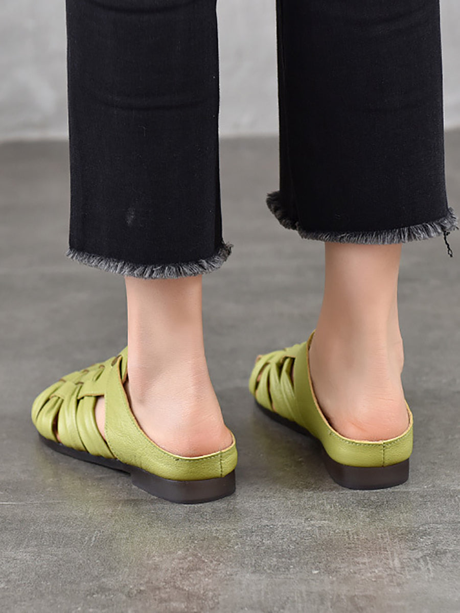 נעלי בית ארוגות מעור אמיתי לקיץ לנשים