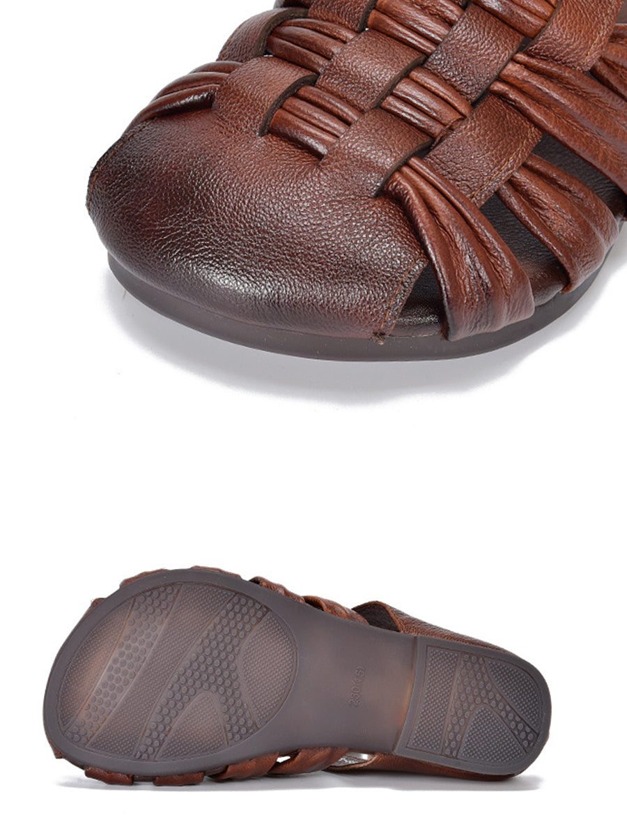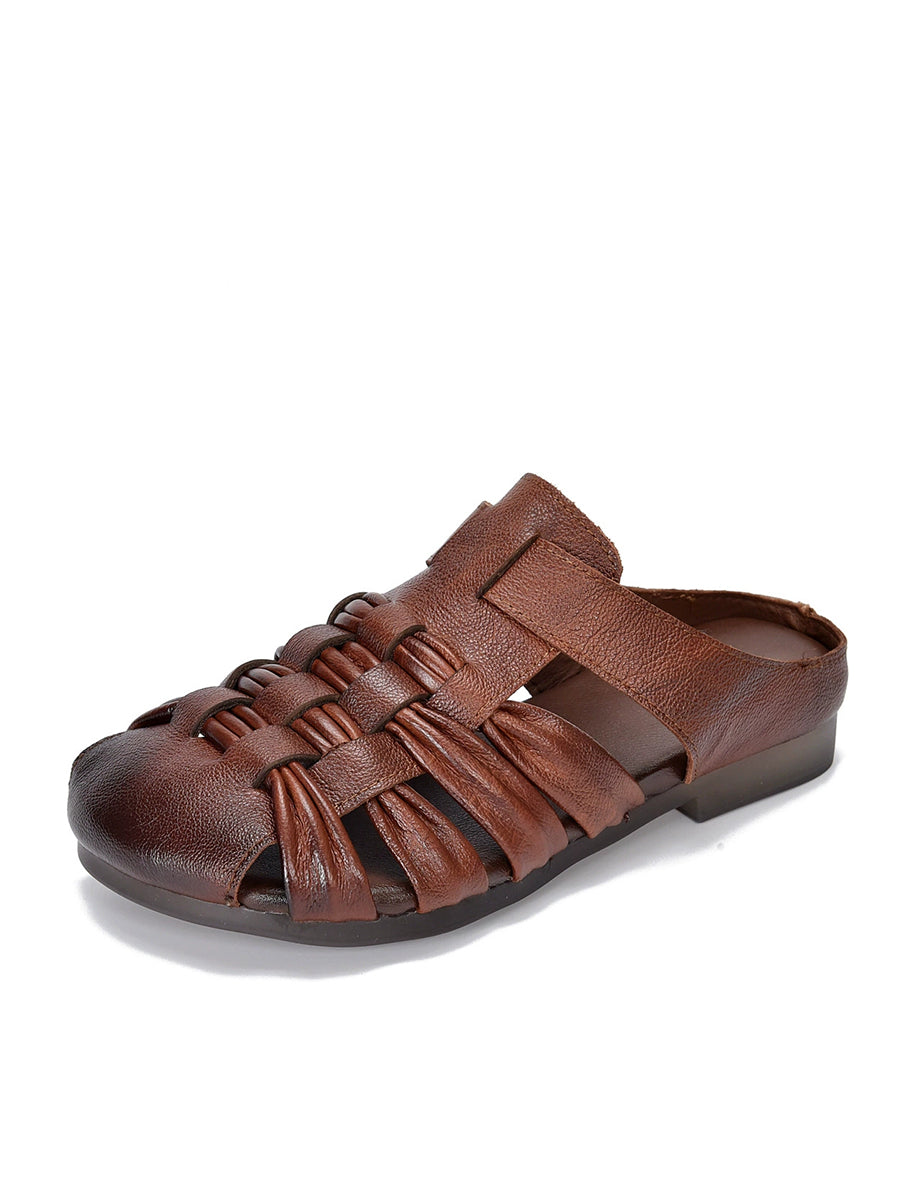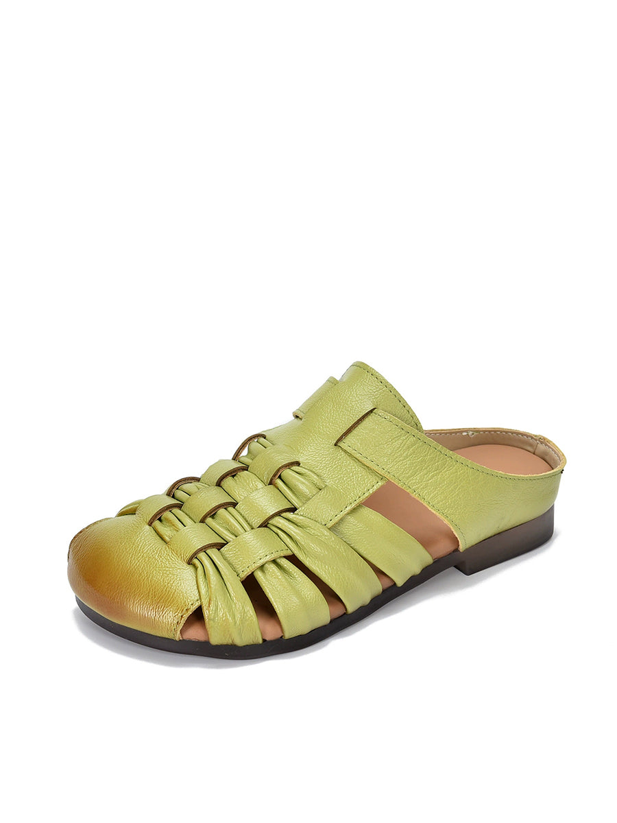 נעלי בית ארוגות מעור אמיתי לקיץ לנשים