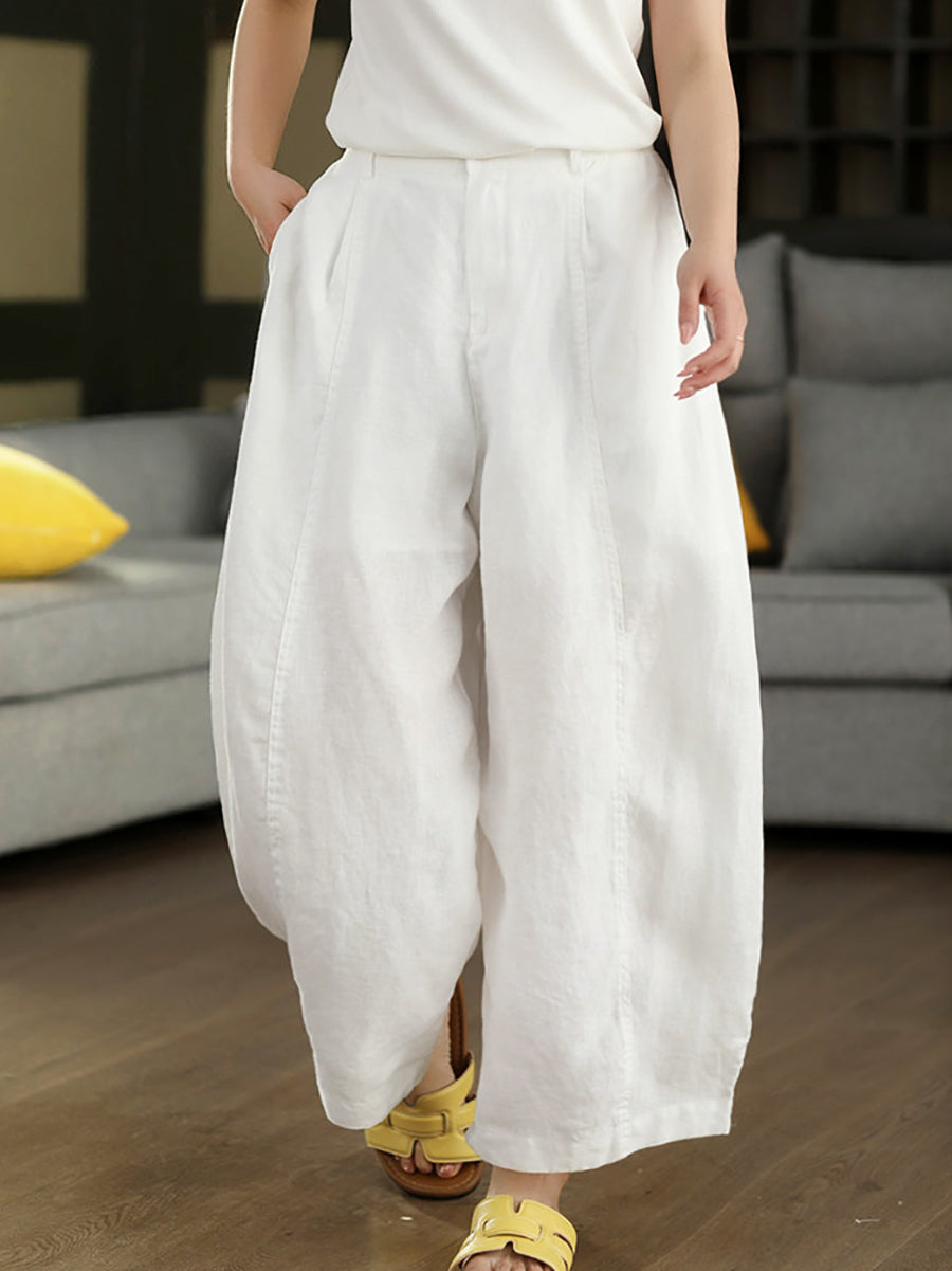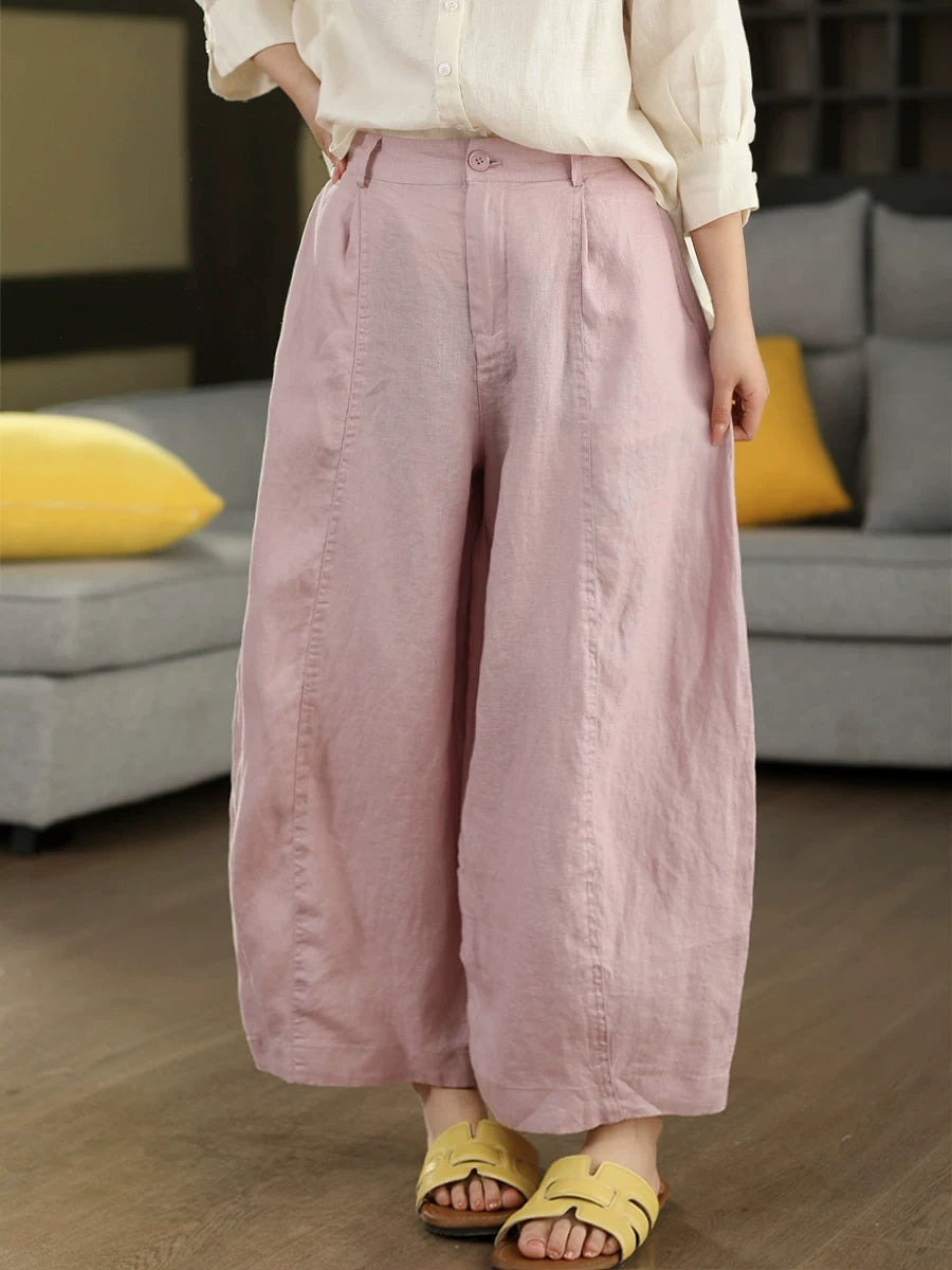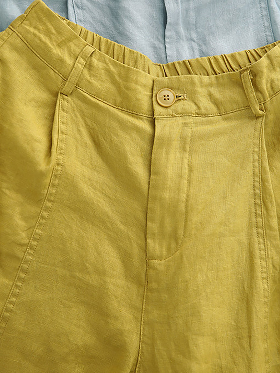 מכנסי הרמון 100% פשתן בצבע טהור לקיץ לנשים