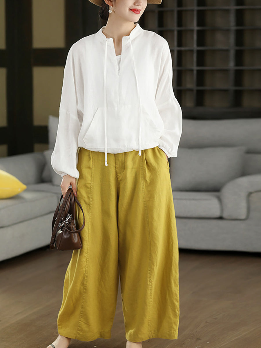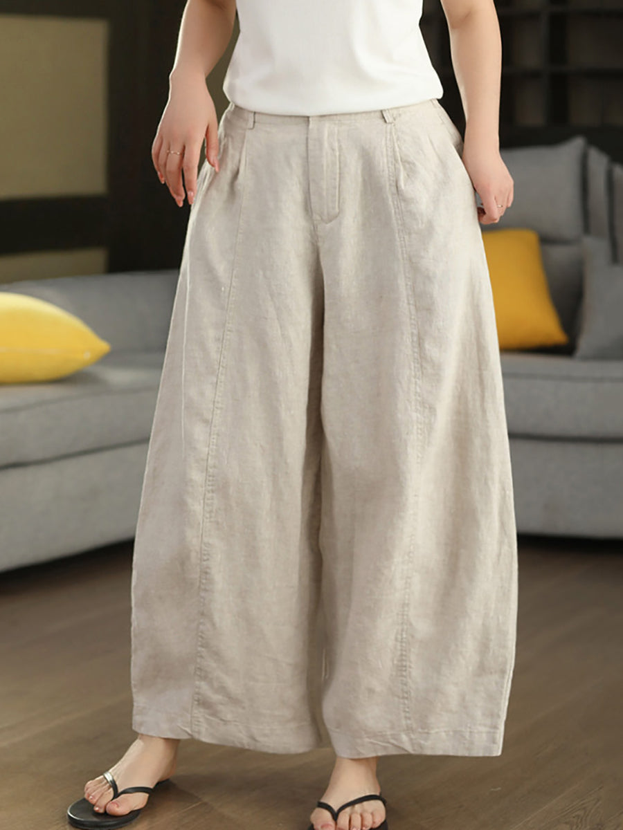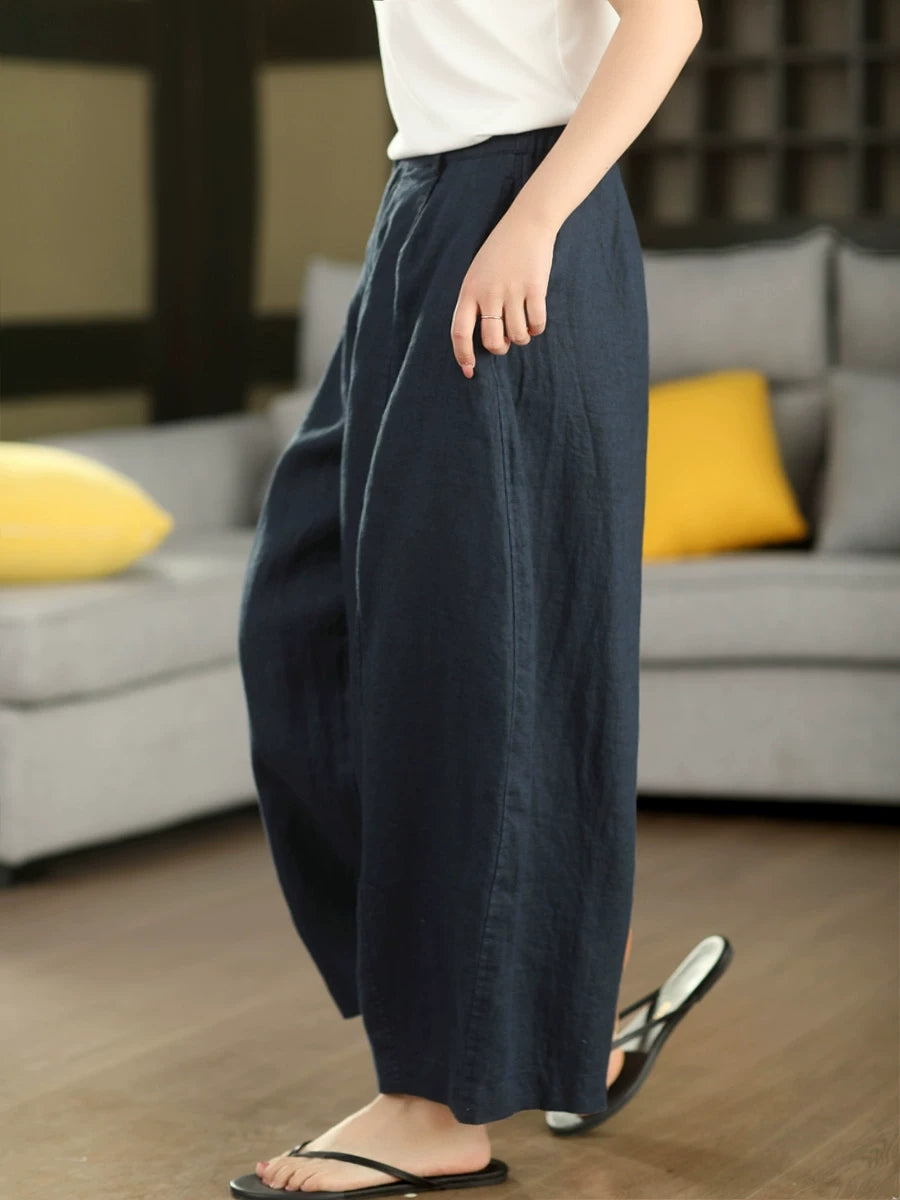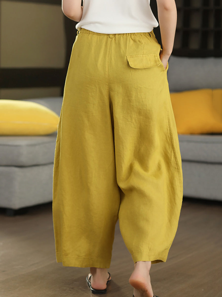 מכנסי הרמון 100% פשתן בצבע טהור לקיץ לנשים