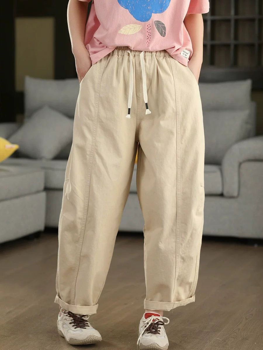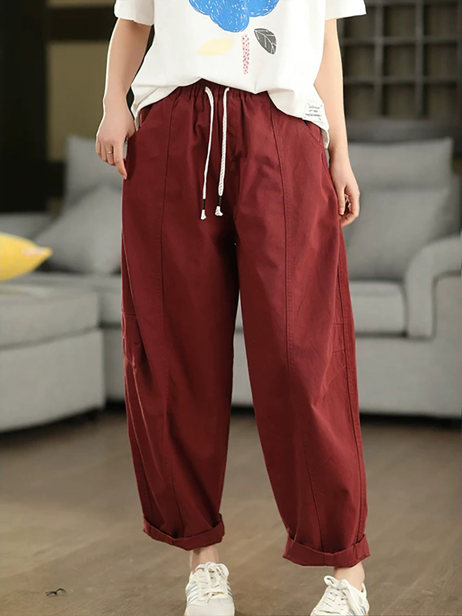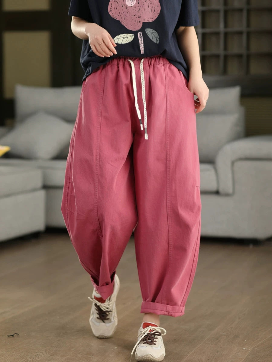 מכנסי הרמון כותנה בצבע טהור לקיץ לנשים