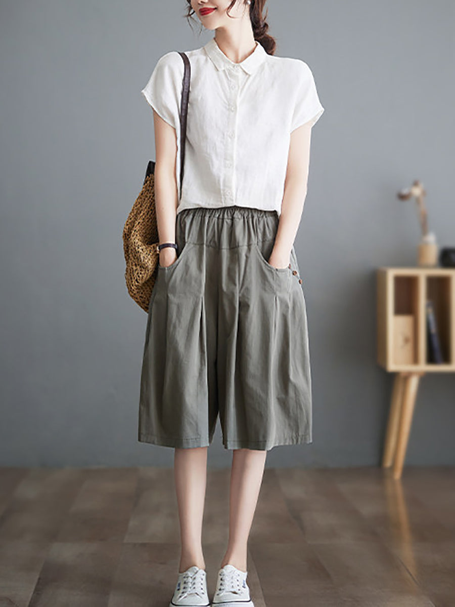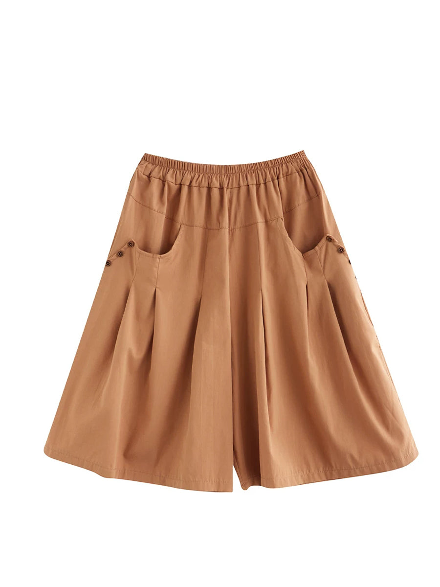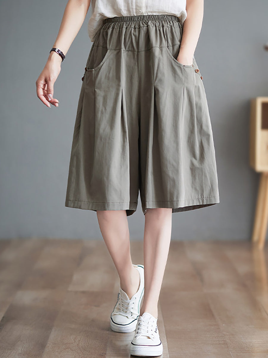 מכנסי אמצע רחבים בצבע טהור לקיץ לנשים