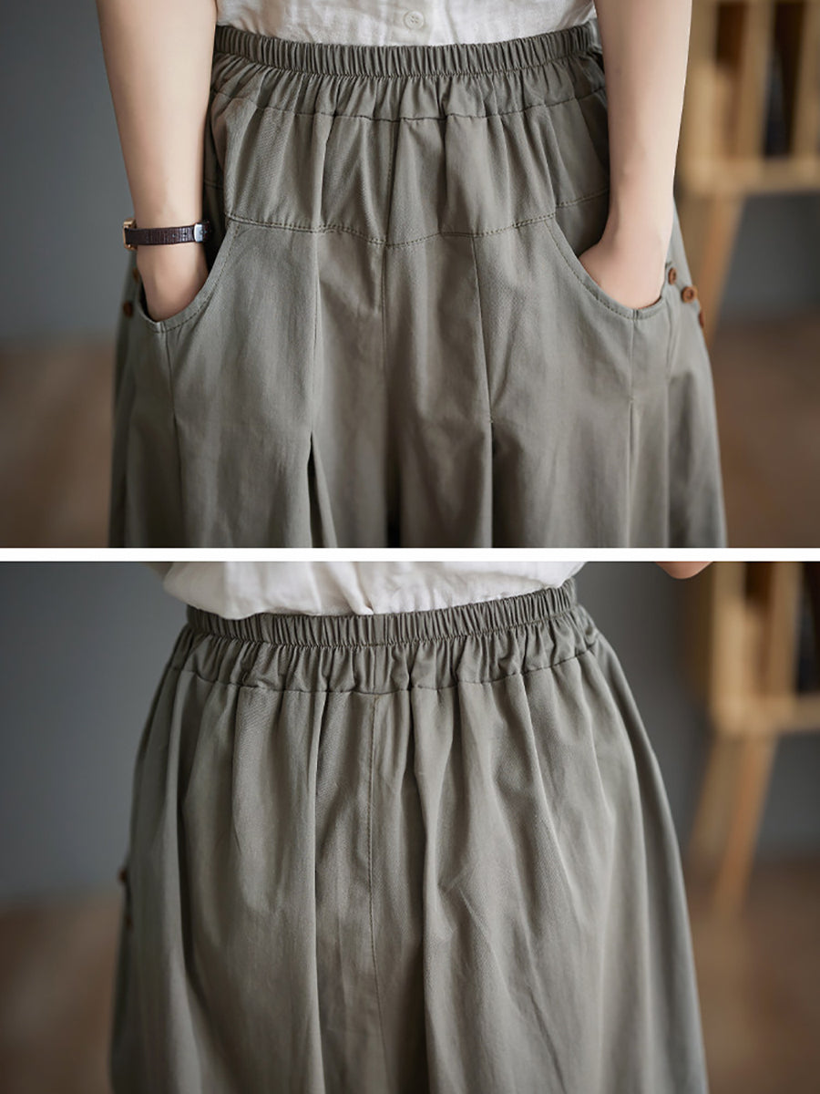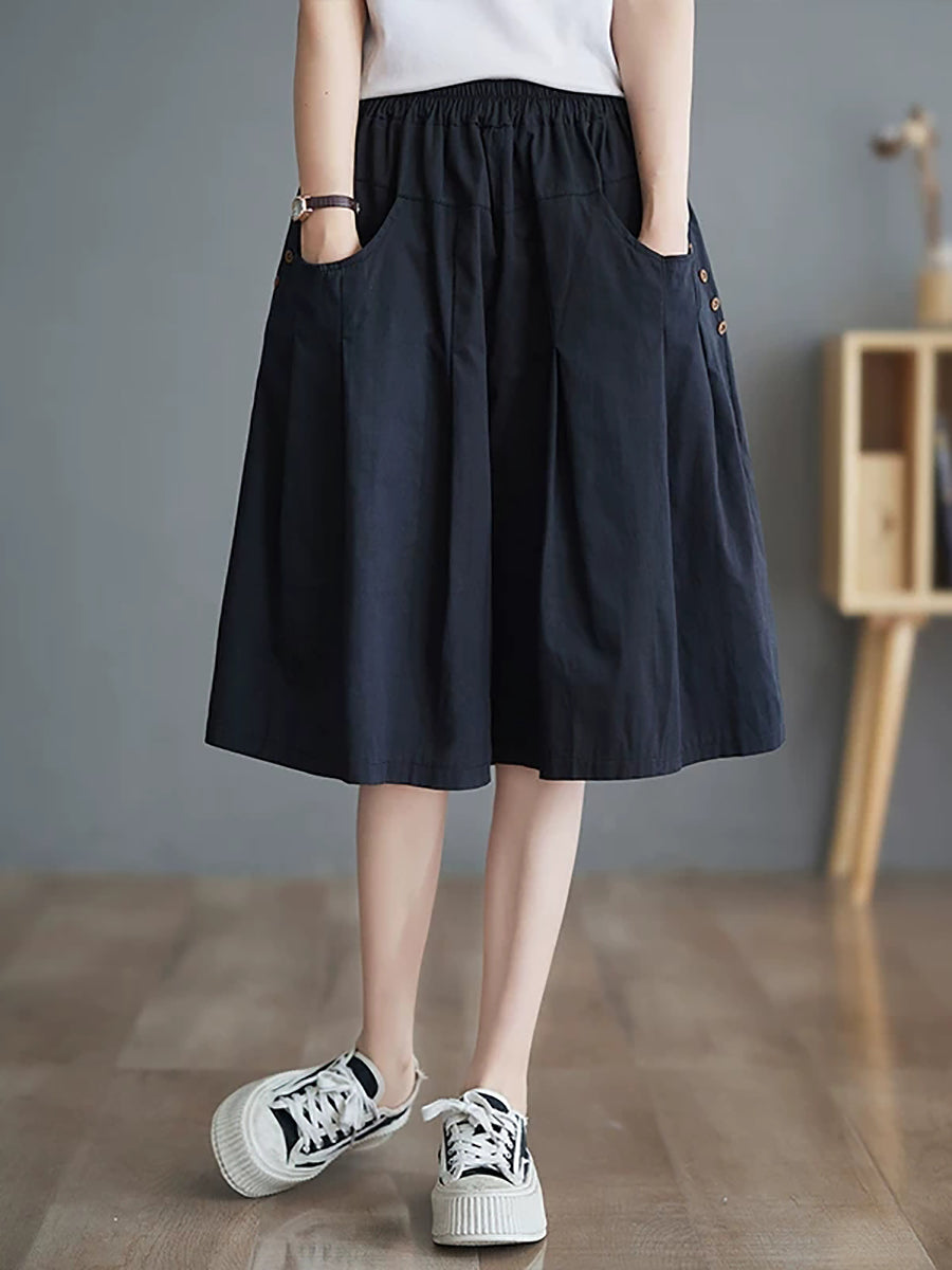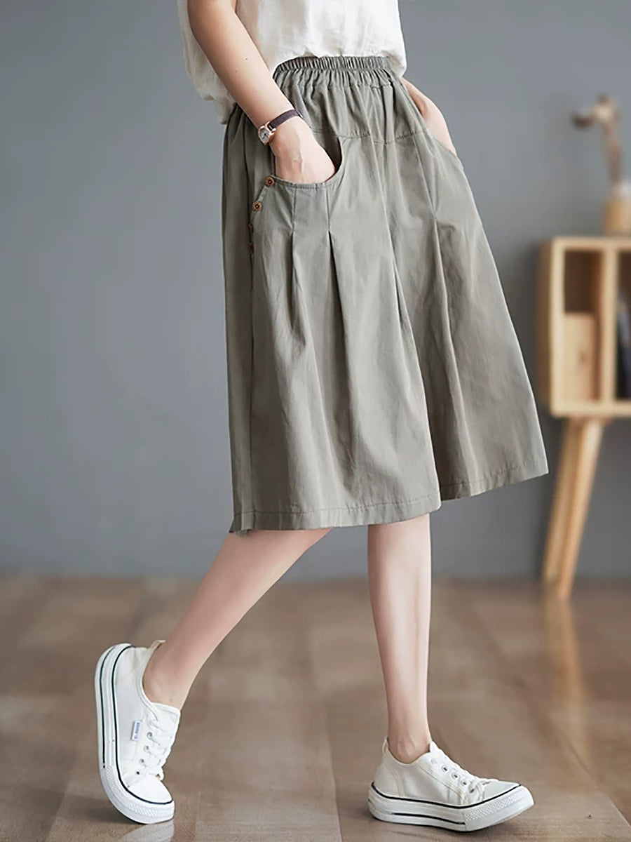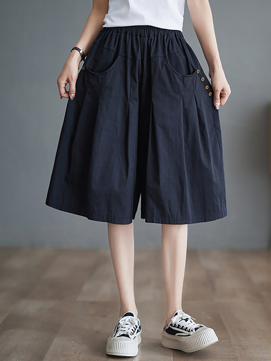 מכנסי אמצע רחבים בצבע טהור לקיץ לנשים