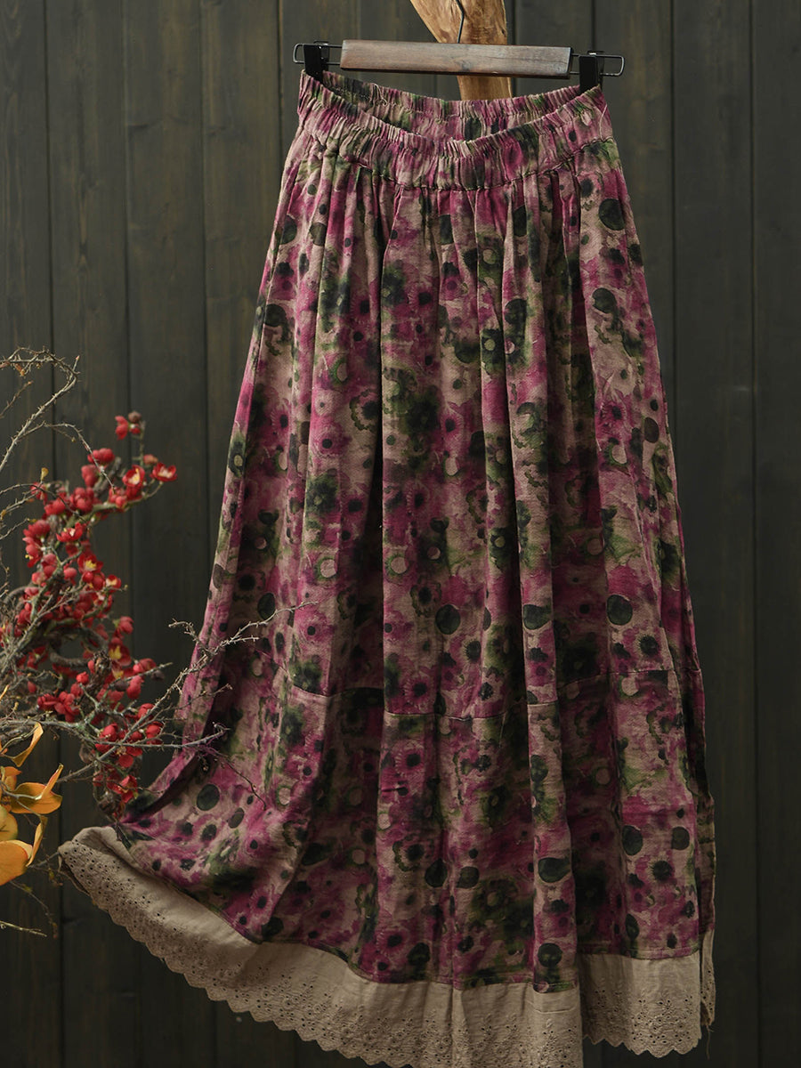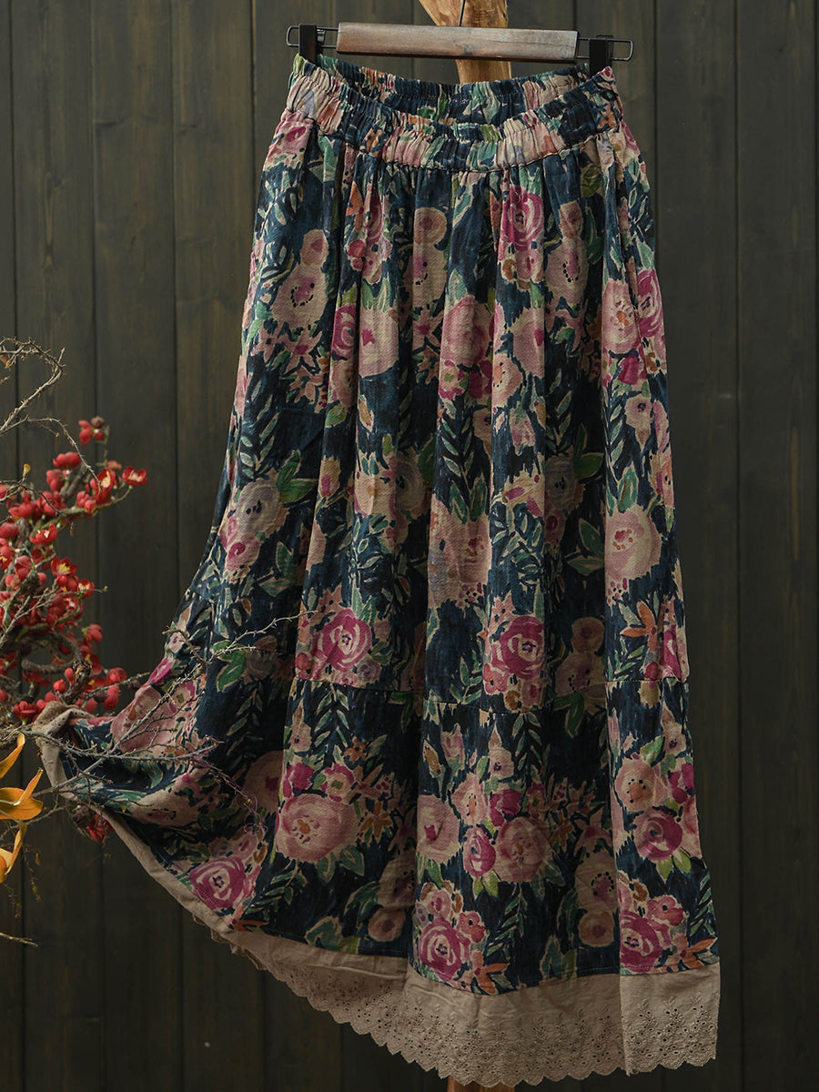 חצאית כותנה פרחונית רטרו לקיץ לנשים