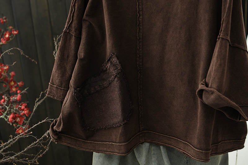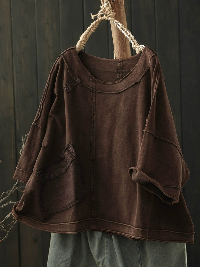 חולצת O-צוואר משוננת בצבע כותנה בצבע טהור לנשים בקיץ